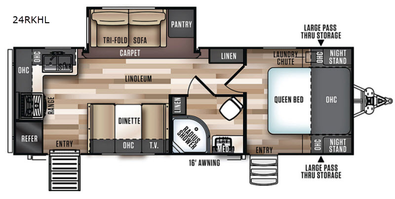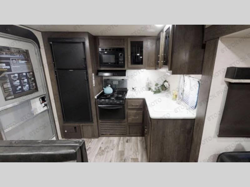 For a functional travel trailer you will want this Salem Hemisphere Hyper-Lyte 24RKHL that features a single slide out to provide more interior space. With two entry doors you can enter through the rear door and you will be in the kitchen area or the front door will lead you into the private front bedroom. This rear kitchen has everything needed to create the meals that you desire while you are away from home. Within the slide out there is a tri-fold sofa which can double as additional sleeping space, if needed! Outside you will find a 16' awning as well as a large pass through storage area and more!