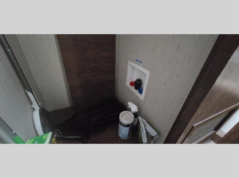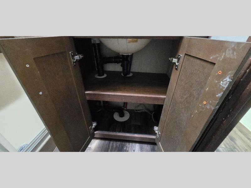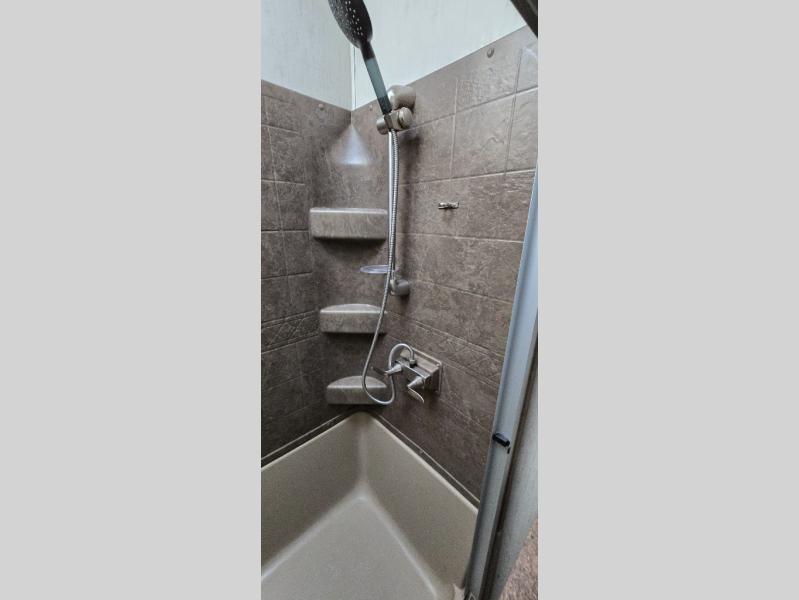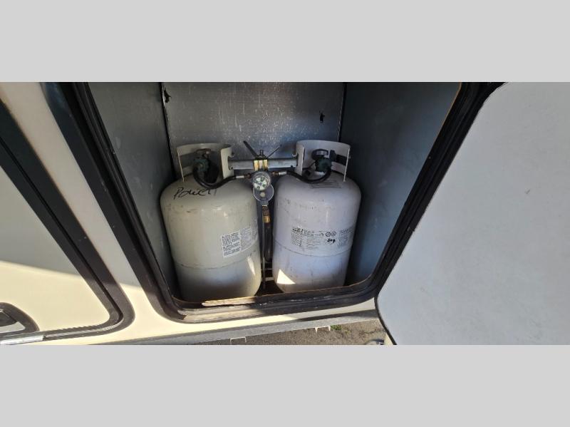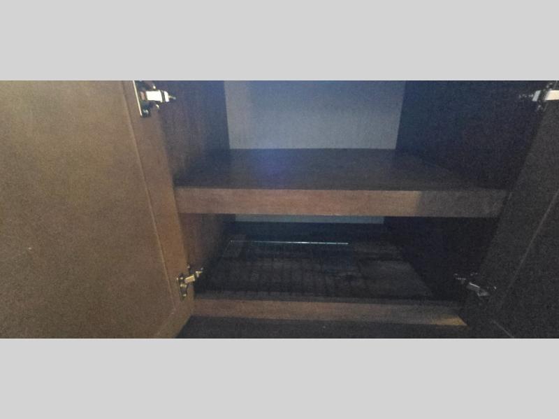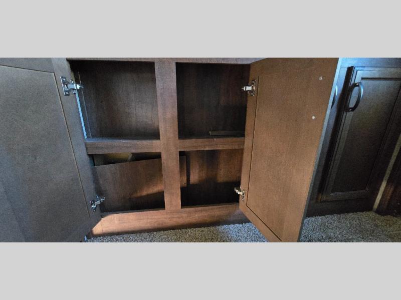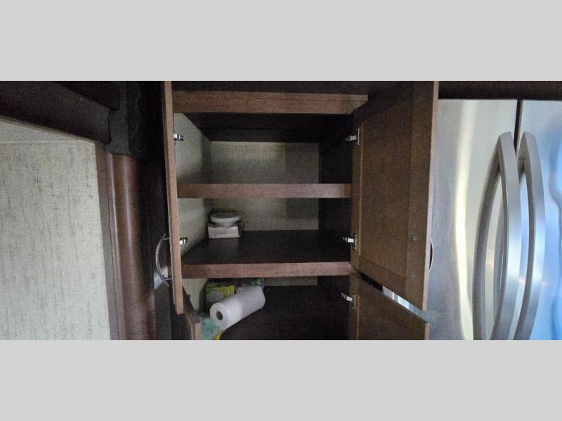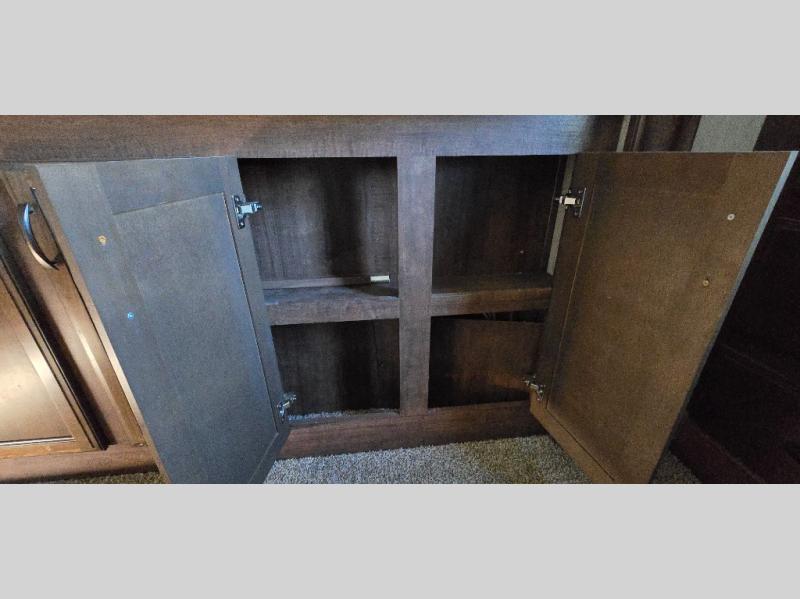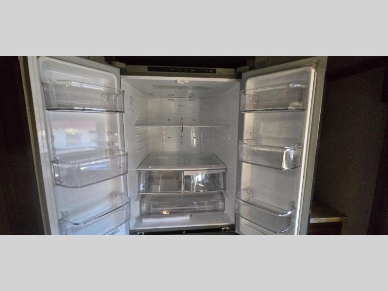 Get ready for more family time and new experiences when you choose to camp with this six-slide Sandpiper fifth wheel. Where are you going to make dinner tonight? That is the question you will be asking yourself when you see this unit. The exterior kitchen allows more time outdoors with your family and features a refrigerator and microwave. The unique front kitchen is spacious and accommodating with opposing slides, an island with a double sink, and a dinette with two chairs. In the spacious bathroom is a large walk-in shower with a seat, plus a closet that has been prepped for a washer and dryer. With two entry doors into this model, you can easily slip out the rear door and head out for an early morning fishing trip!