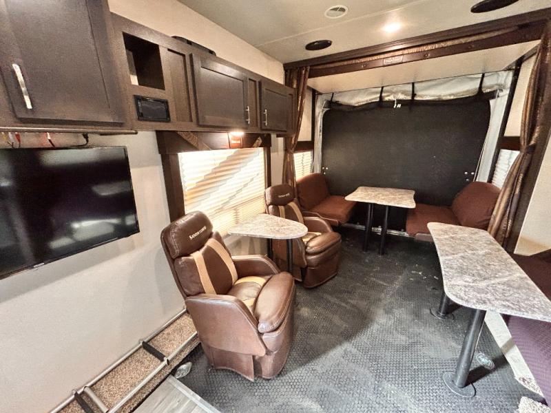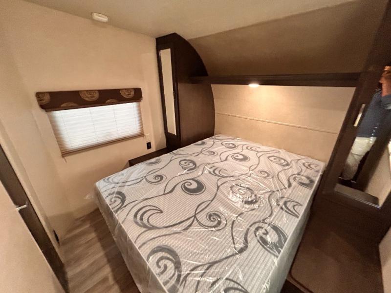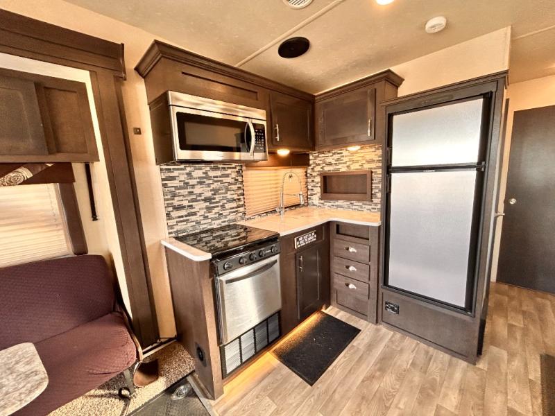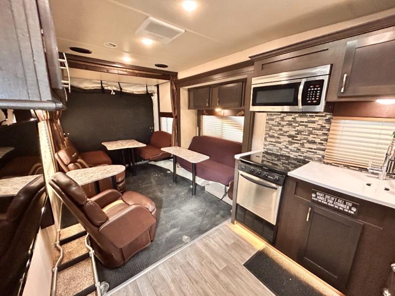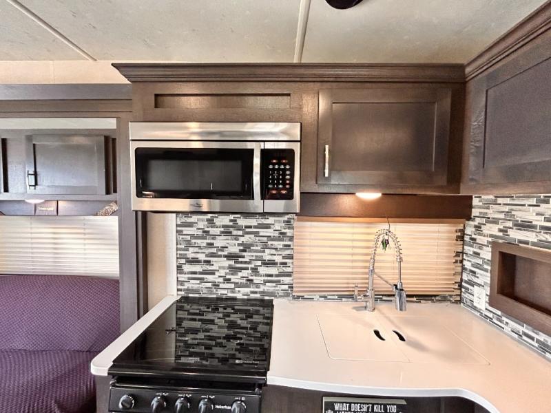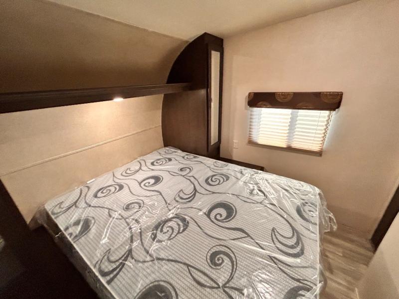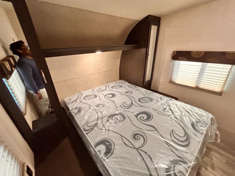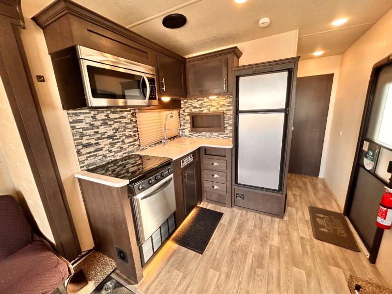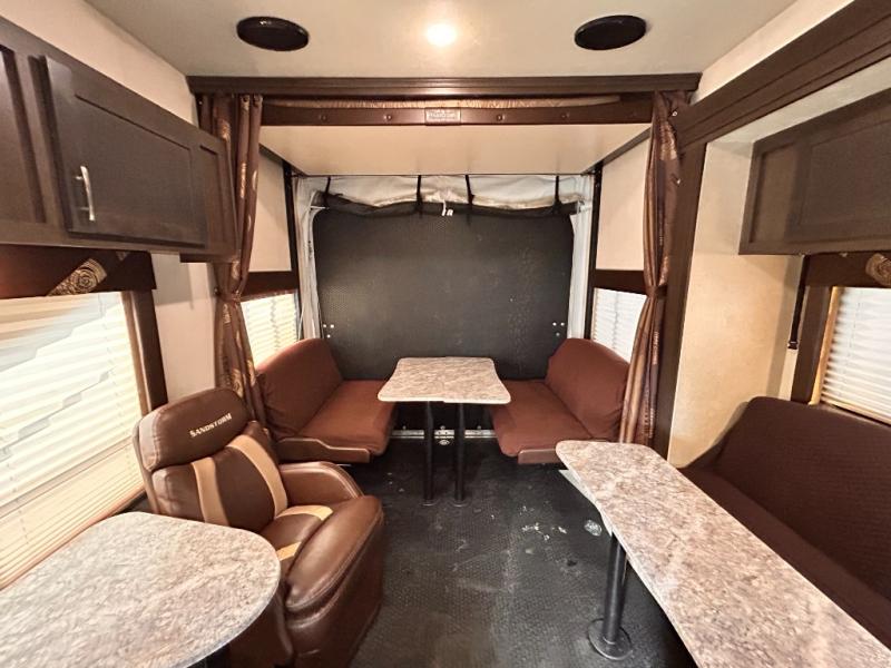 If you're looking for a lightweight and easy to tow travel trailer then one of these toy haulers by Forest River Sandstorm is for you! Each unit features a 102" wide body construction, a 3,000 lb. radius ramp door, and 2" fully insulated floors making these toy haulers flexible to your vacation destinations whether it's to the dunes or mountains it is ready. Some of the interior features that will impress you are the Bluetooth stereo with indoor and outdoor speakers, the Thermafoil countertops, a Denver pillow top mattress, and the 3 electric charging stations.