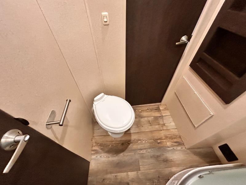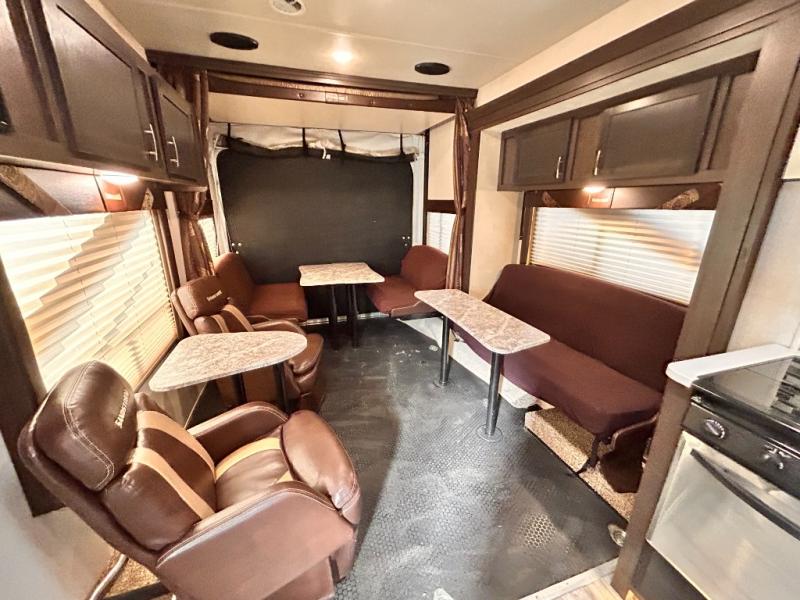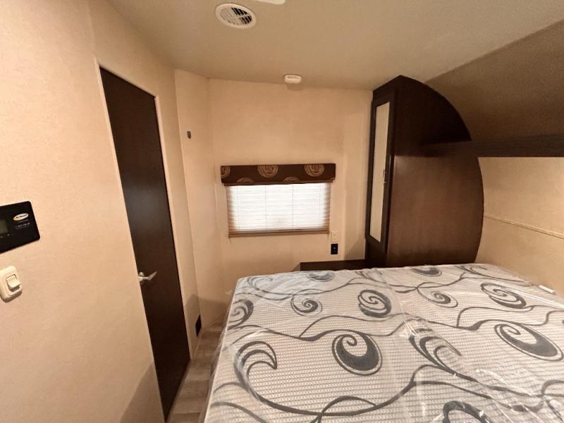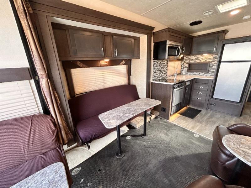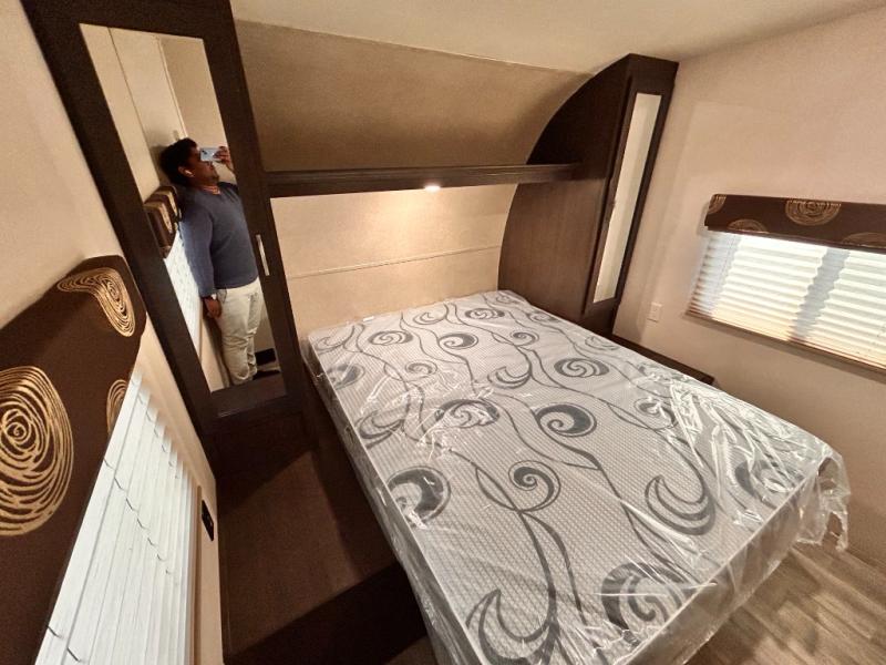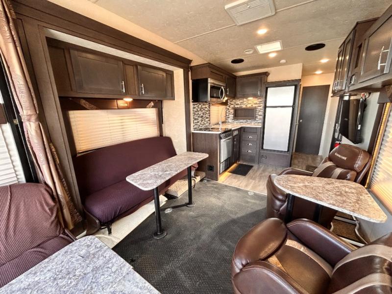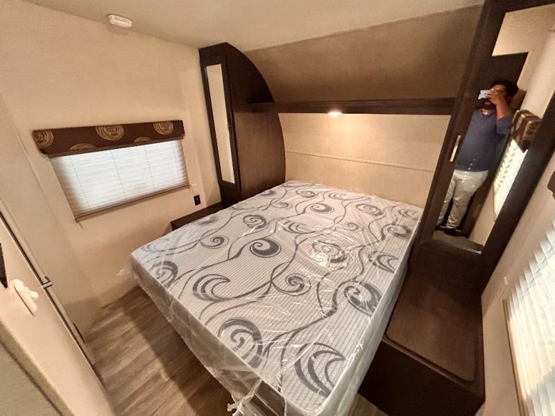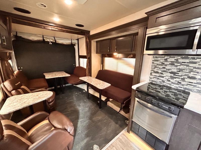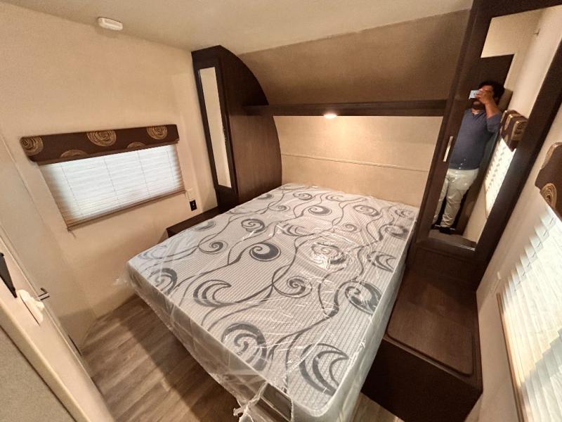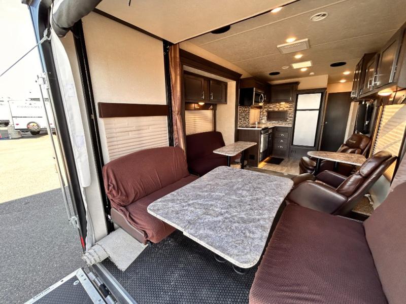 If you're looking for a lightweight and easy to tow travel trailer then one of these toy haulers by Forest River Sandstorm is for you! Each unit features a 102" wide body construction, a 3,000 lb. radius ramp door, and 2" fully insulated floors making these toy haulers flexible to your vacation destinations whether it's to the dunes or mountains it is ready. Some of the interior features that will impress you are the Bluetooth stereo with indoor and outdoor speakers, the Thermafoil countertops, a Denver pillow top mattress, and the 3 electric charging stations.