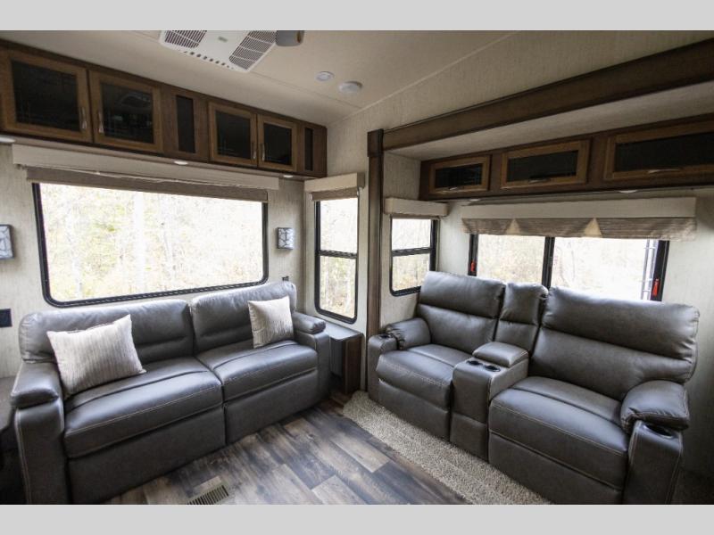 In any Forest Rivers Sierra, you will find a line of luxury fifth wheels that bring you the very best in modern interiors and exteriors. Each model has Beauflor® linoleum in rustic wood plank, mocha accent crown molding over the kitchen cabinets, stainless steel appliances, a decorative backsplash, and a premium soundbar with built in flush mounted DVD player. They are constructed with a welded aluminum-framed, vacuum bonded laminated superstructure, a fully enclosed, heated underbelly, and enclosed and heated dump valves for years of enjoyment. You will also love the limited time offered Premium Plus package features for free. Choose your favorite layout today!