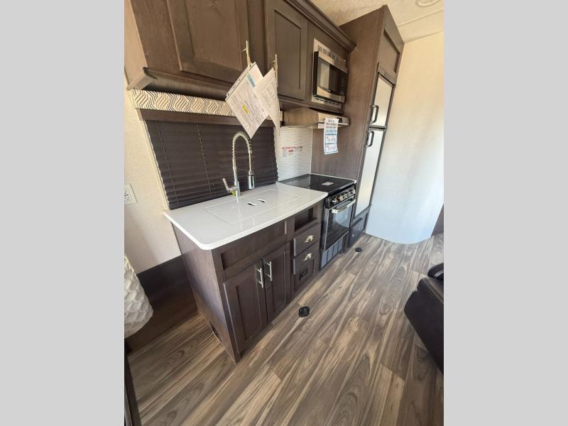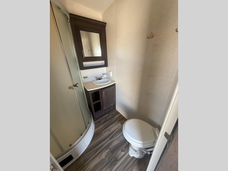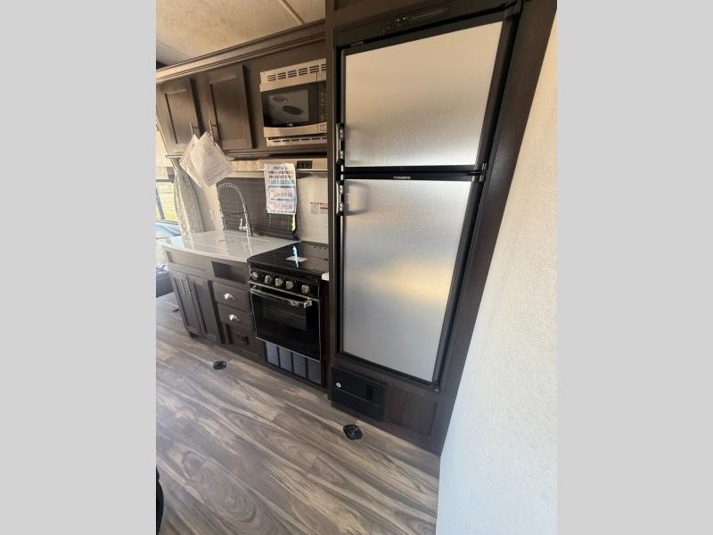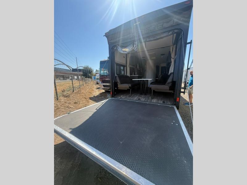 If you've been looking for a trailer that can haul your dirt bikes, plus provide you with plenty of comfortably features, then this toy hauler is for you! You'll enjoy 13' 9" of cargo space, plus an electric pass thru dinette that can convert to sleeping space at night. The front private bedroom includes a queen bed, just like you have at home. With the addition of the electric bed, you can comfortably sleep six people in this model for a fun weekend getaway. The three burner range allows you to cook a hot meal after being outside all day, and the full bath is convenient for everyone.