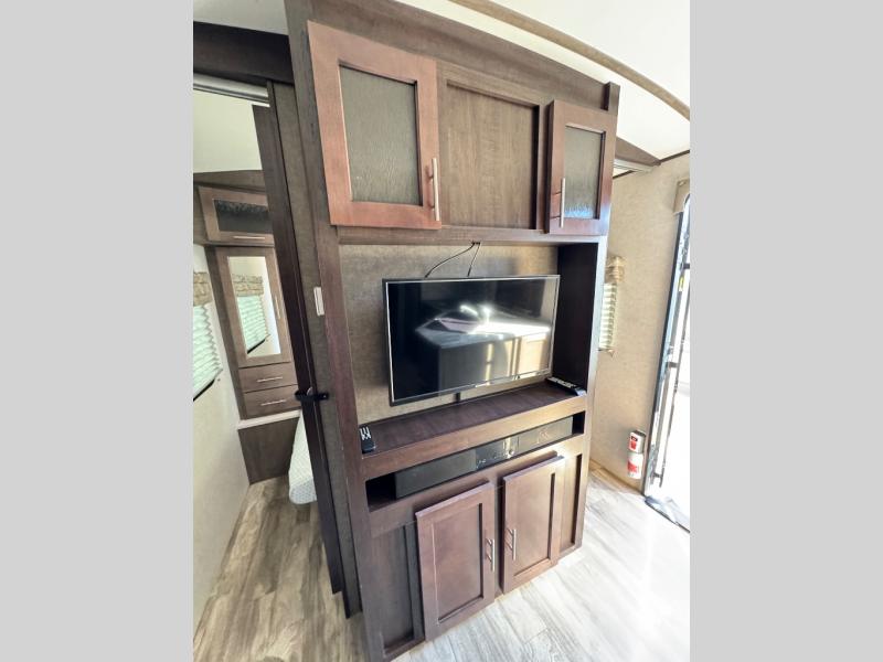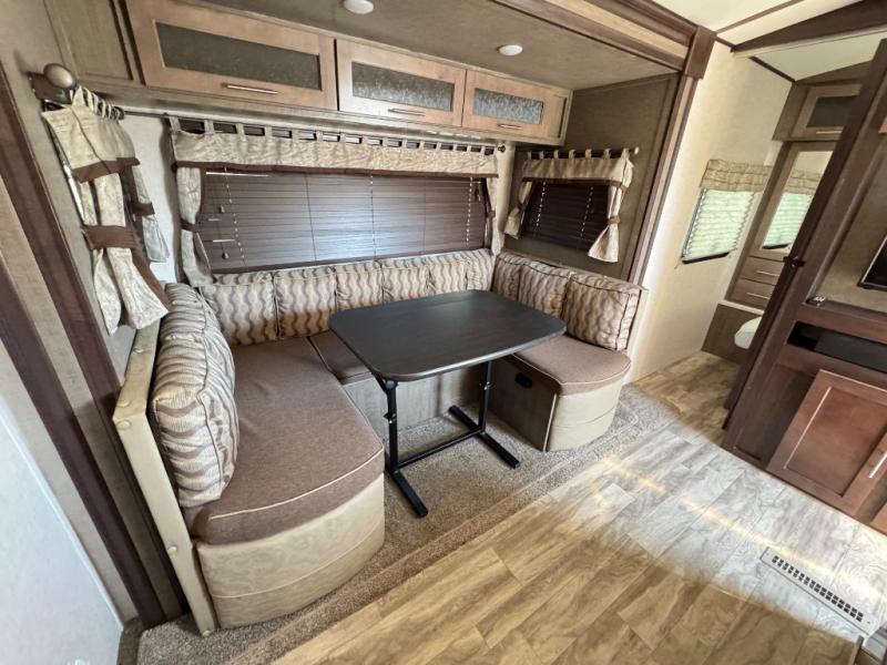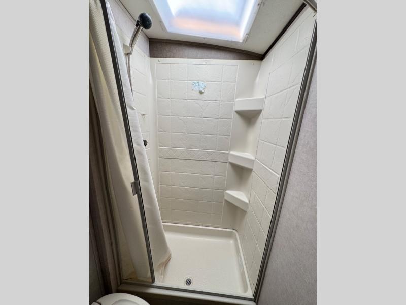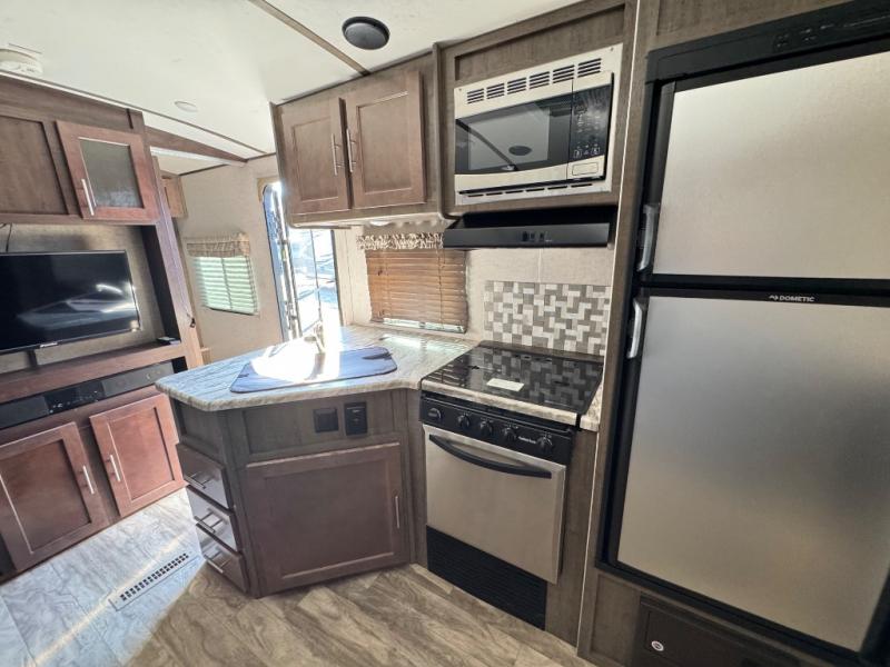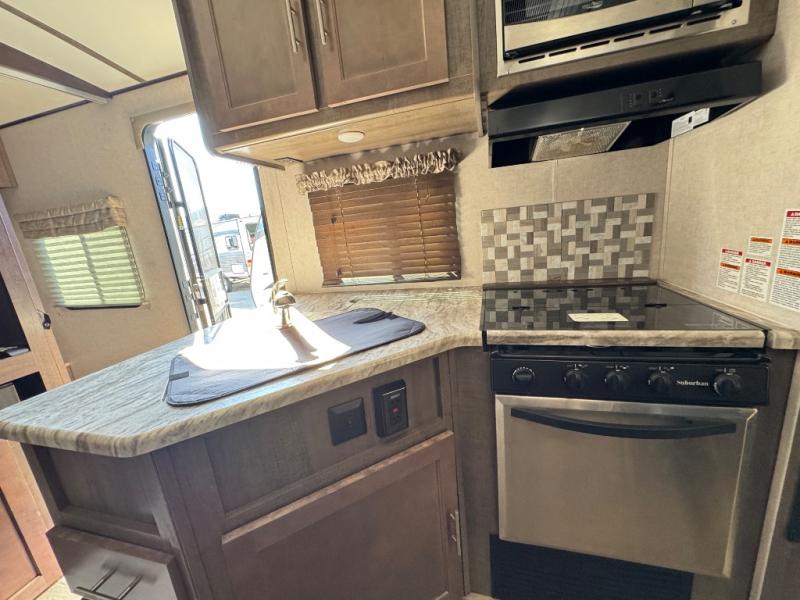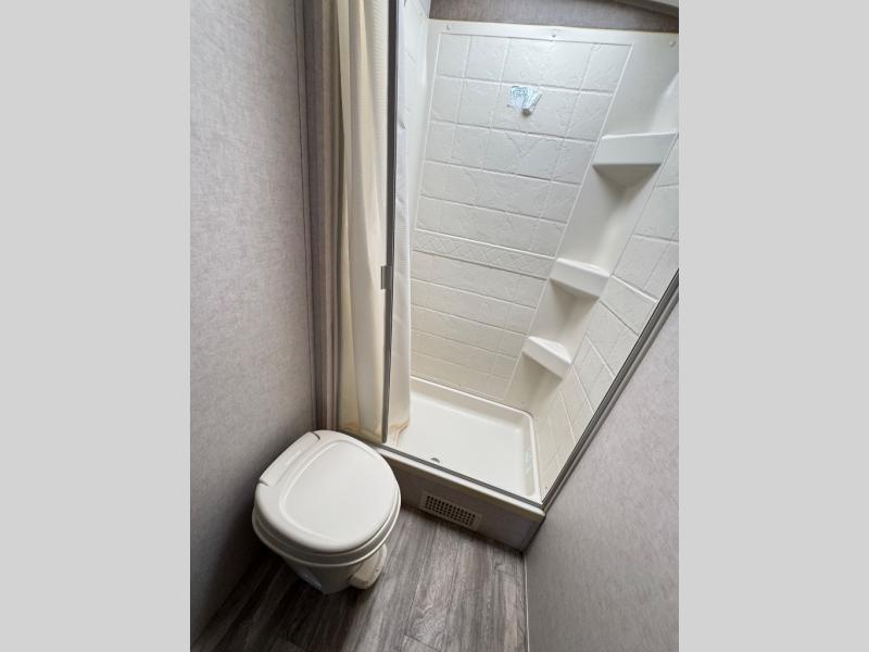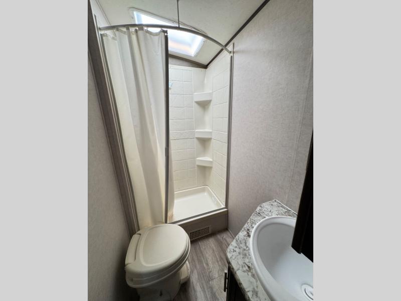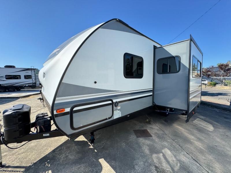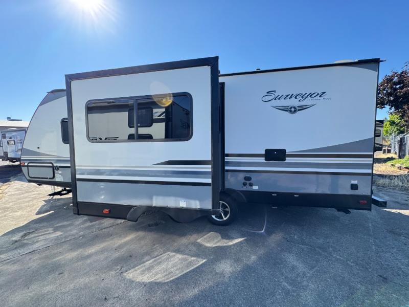 For any camping trip you will want a Forest River Surveyor travel trailer. These models are lightweight and easy to tow, plus you will find that inside there is superior craftsmanship throughout. Along the interior there is a barreled ceiling which adds more headroom in each model and stainless steel appliances for an added at home feature. The designer Carefree flooring is stylish and easy to clean, plus there is a Furrion Bluetooth stereo for you to crank up the tunes. Along the exterior you will enjoy convenient features like the outside shower, the electric awning with LED lights, and the pet friendly utility hook with food bowls too. It is now easier than ever to choose a travel trailer that is ideal for you! What are you waiting for? Come select your Surveyor travel trailer today!