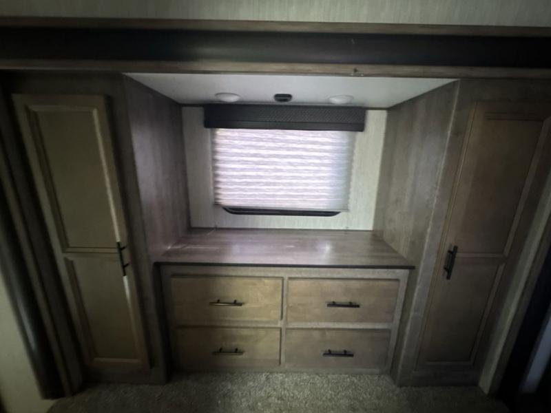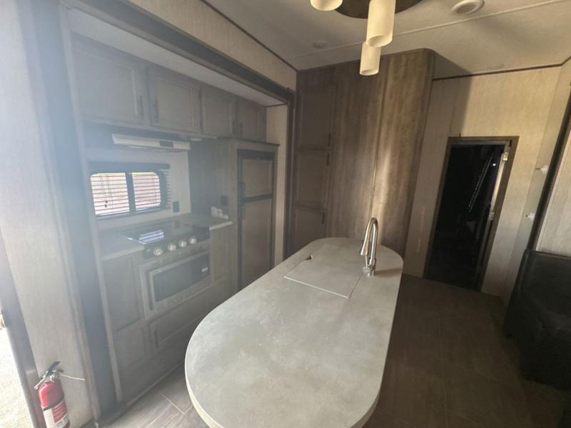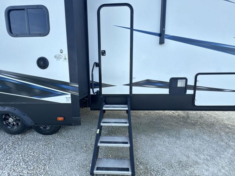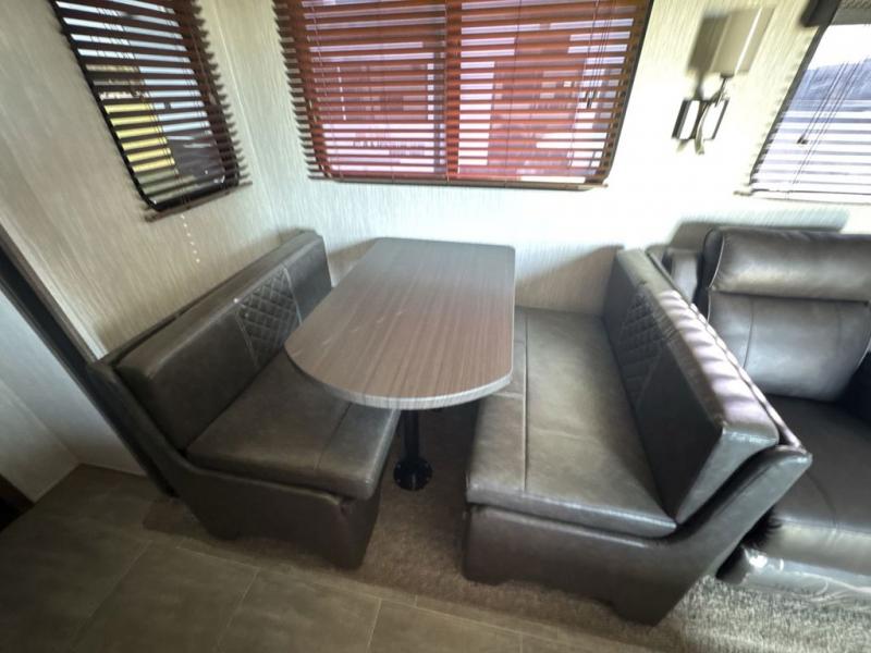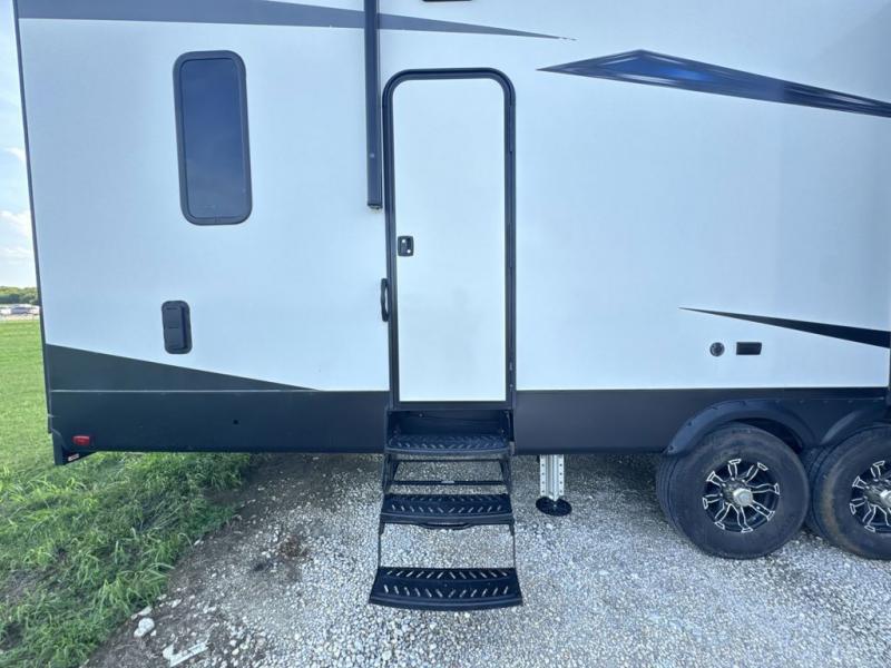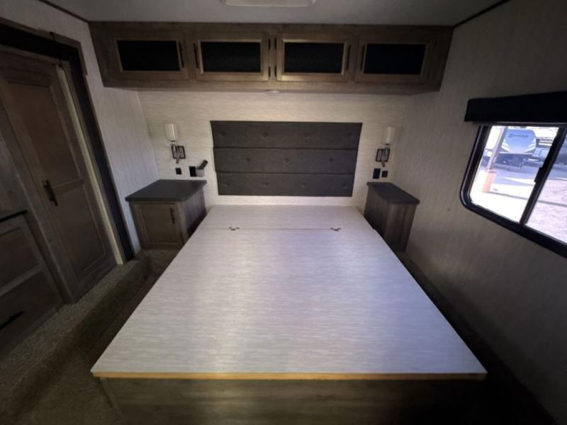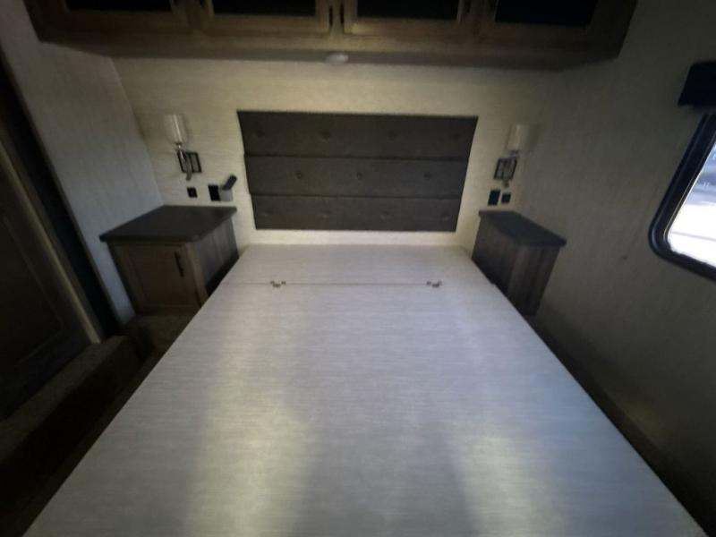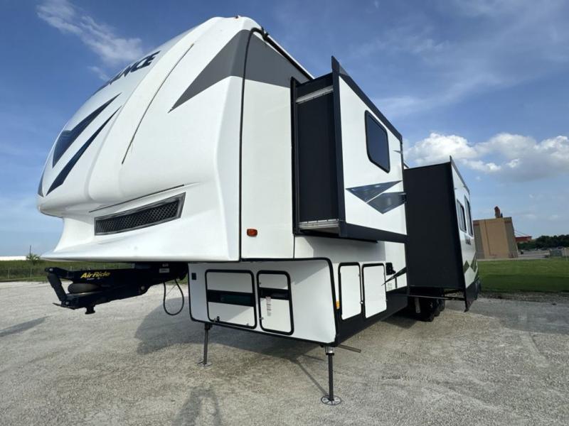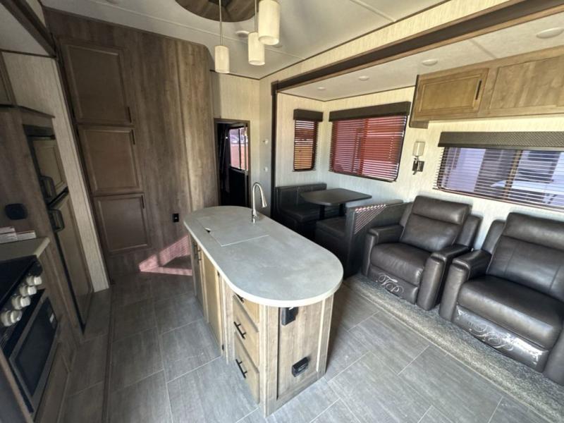 No weekend getaway will be completely satisfying without this Vengeance toy hauler. Because this unit can sleep nine people, it is a perfect addition to any family vacation, and the many different sleeping areas provide comfortable accommodations for a good night's sleep all around. The full and half bath are an important addition to have while you are traveling with such a large group, and the three slides that have been included allow this unit to hold a kitchen island that will keep dinner preparations running smoothly each evening.