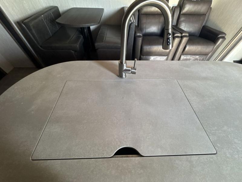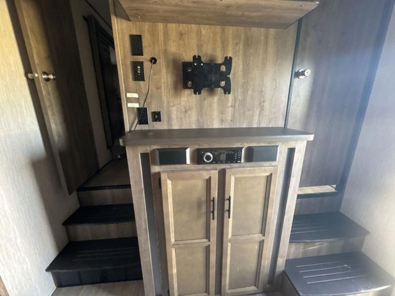 All of these indulgent amenities and the exceptional price tag are what contribute to making this unit a part of "A New Breed of Toy Hauler." Whether you enjoy kayaking down the river, riding your ATV into the deep forest, or fishing for that next big catch, this toy hauler will allow you to bring along all of your favorite toys without feeling overwhelmed because of its separate garage space, and the fuel station with pump that has been included will make sure that your fun and your gas will last the entire weekend. When it comes time to clean up from the afternoon's adventures, you will appreciate the outdoor shower with hot and cold water that will allow you to rinse off before you go inside so that you don't track nature everywhere.