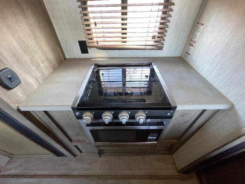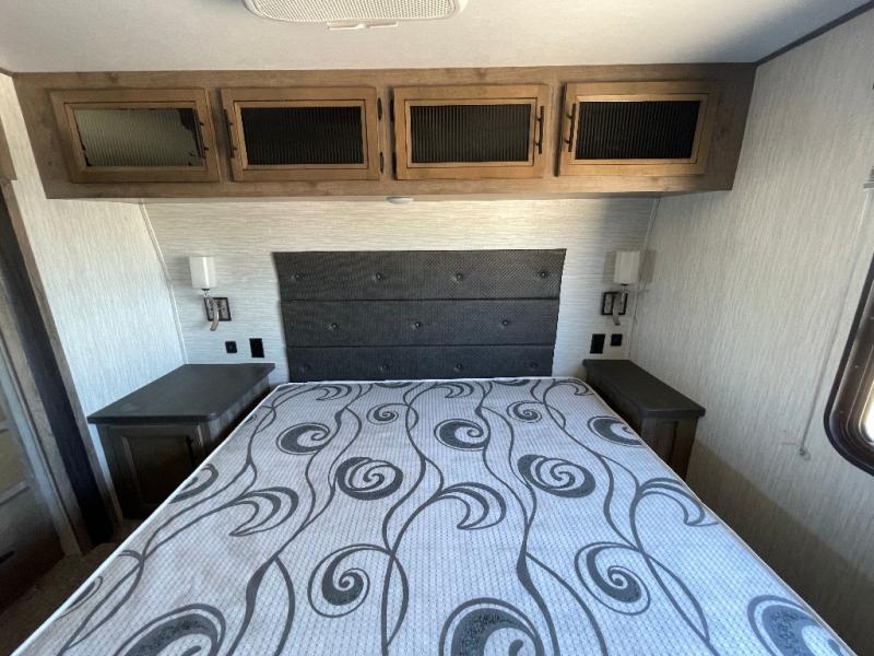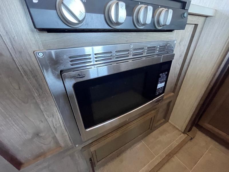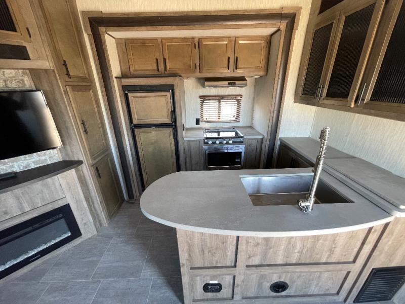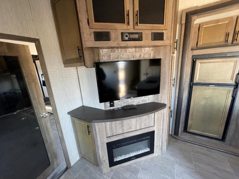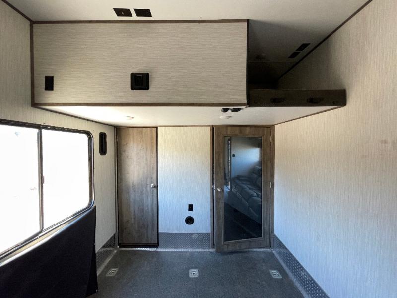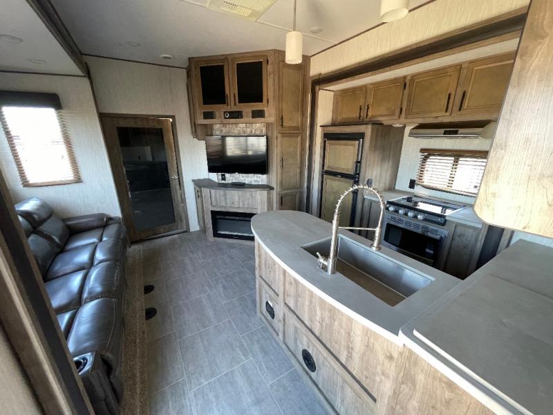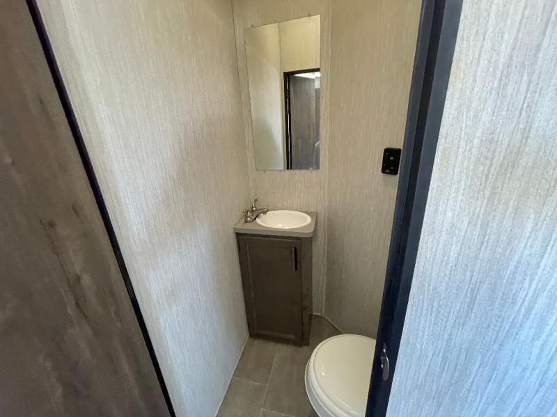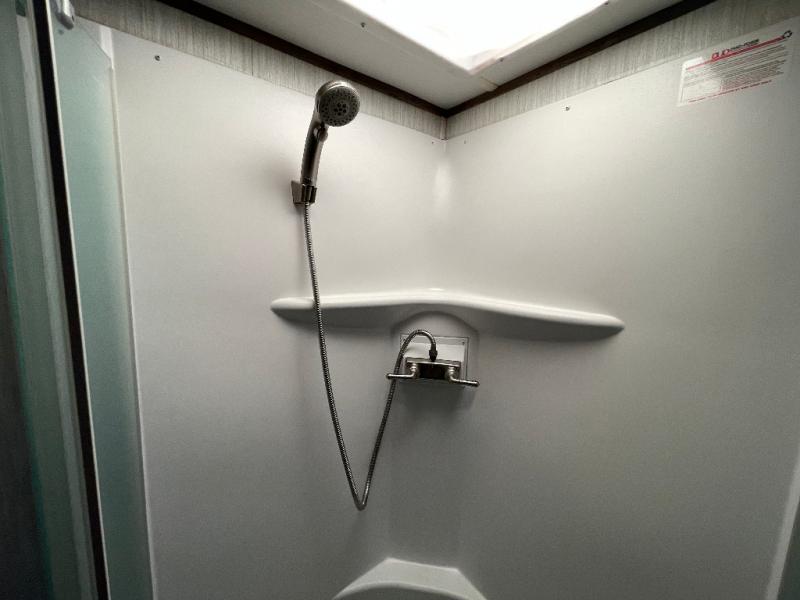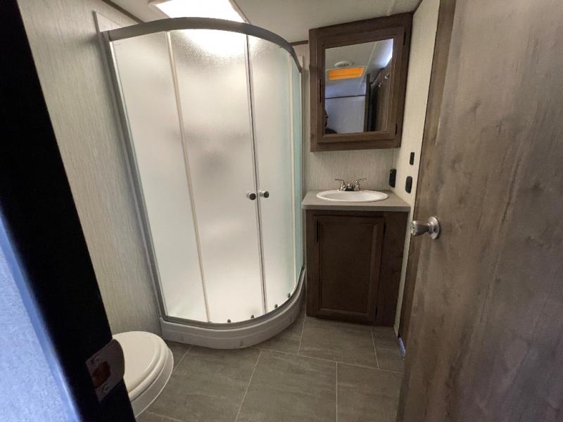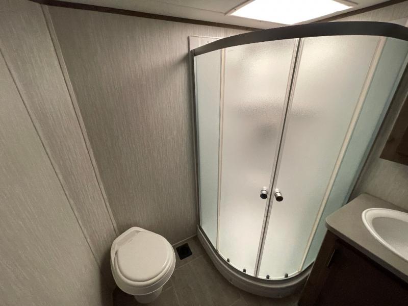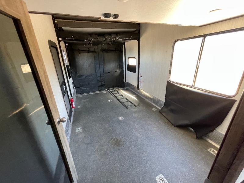 If you are looking for a unit that is both accommodating and comfortable, then this Vengeance toy hauler is for you. The private master suite will be your favorite place to relax and unwind from the exhaustion of the day, and your children will jump at the opportunity to spend their nights sleeping in the loft. Because this unit has both a full and half bath, no one needs to fight over the amount of time it takes to get ready each morning, and the shower skylight is what brings in the welcoming sunlight that brightens up the bathroom and keeps it feeling fresh.
