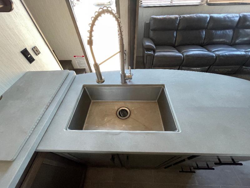 All of these indulgent amenities and the exceptional price tag are what contribute to making this unit a part of "A New Breed of Toy Hauler." Whether you enjoy kayaking down the river, riding your ATV into the deep forest, or fishing for that next big catch, this toy hauler will allow you to bring along all of your favorite toys without feeling overwhelmed because of its separate garage space, and the fuel station with pump that has been included will make sure that your fun and your gas will last the entire weekend. When it comes time to clean up from the afternoon's adventures, you will appreciate the outdoor shower with hot and cold water that will allow you to rinse off before you go inside so that you don't track nature everywhere.
