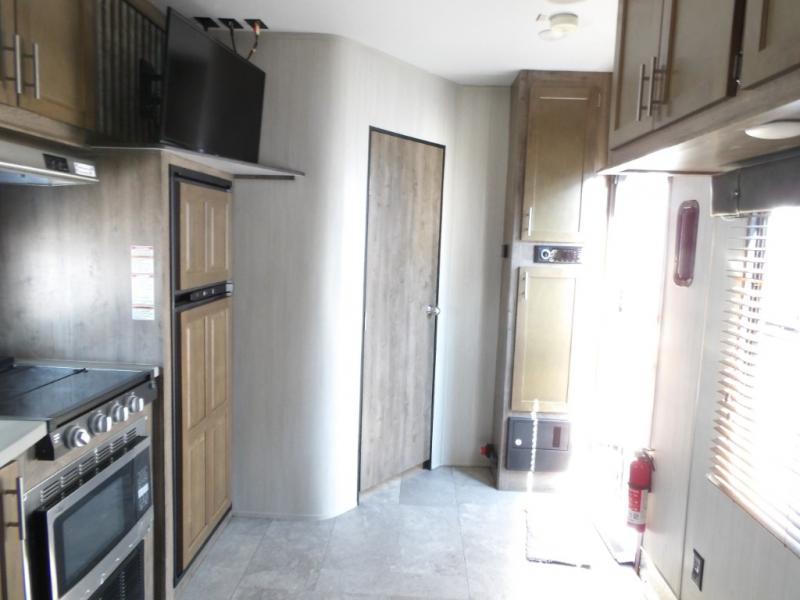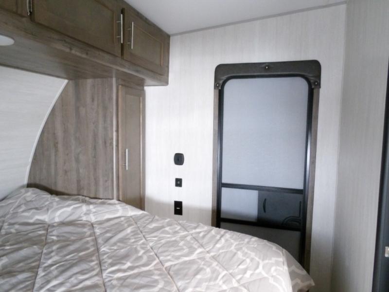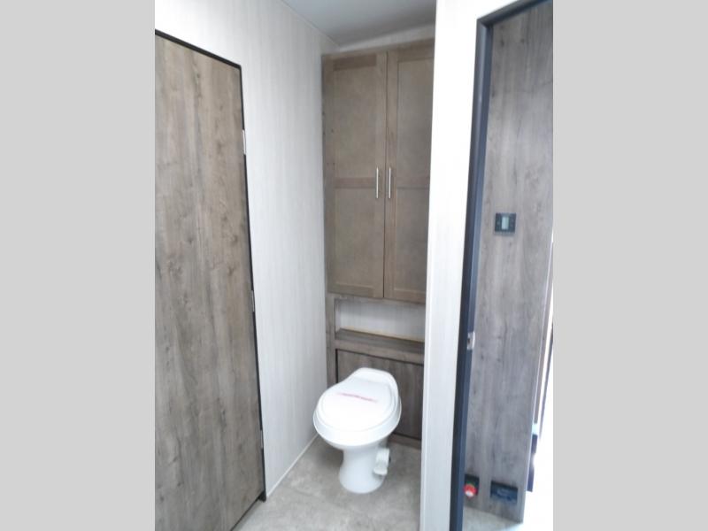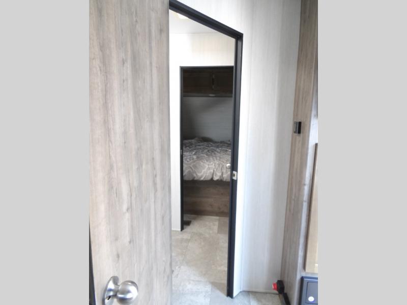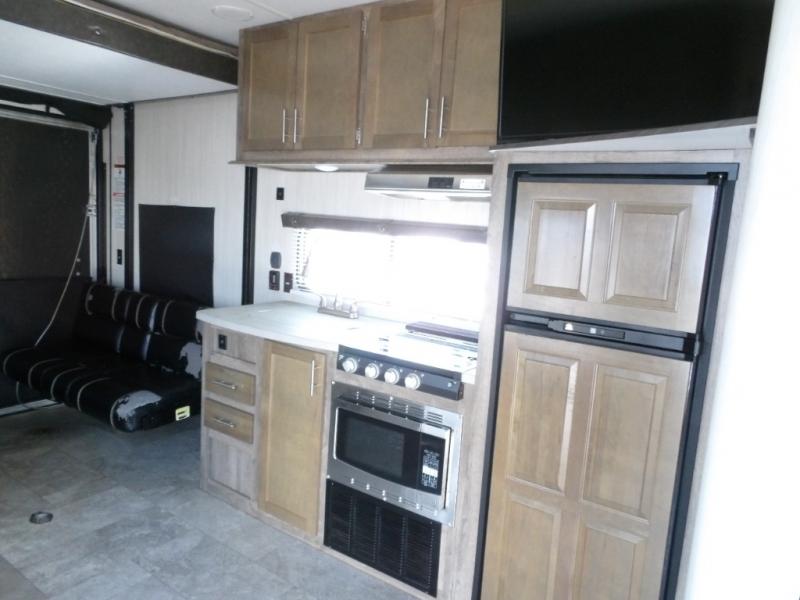 Get ready to enjoy your next weekend away with this travel trailer and your toys with 6'4" up to 15' 4" of cargo storage and main living space. With two entry doors you can either directly enter the main living area or the front private bedroom. Imagine having sleeping space for four on the king-size bed and the flip-up sofas after a long day on the toys. The walk-through bathroom has doors along either side for complete privacy, and during the day the 21' power awning offers plenty of shade from the sun, and at night the awning LED lights provide a great space to relax after a fun ride.