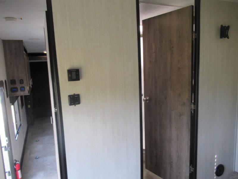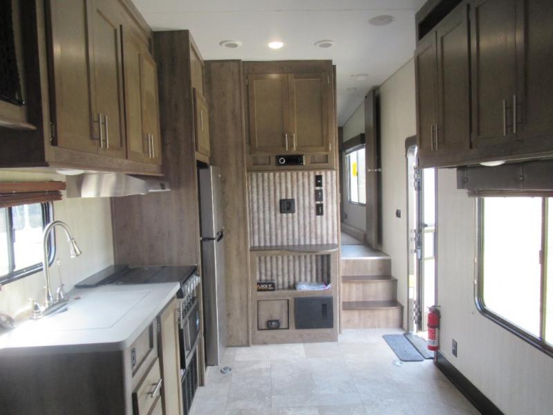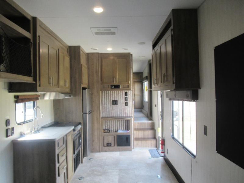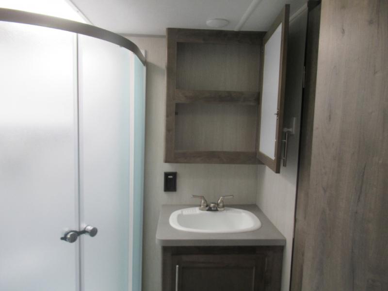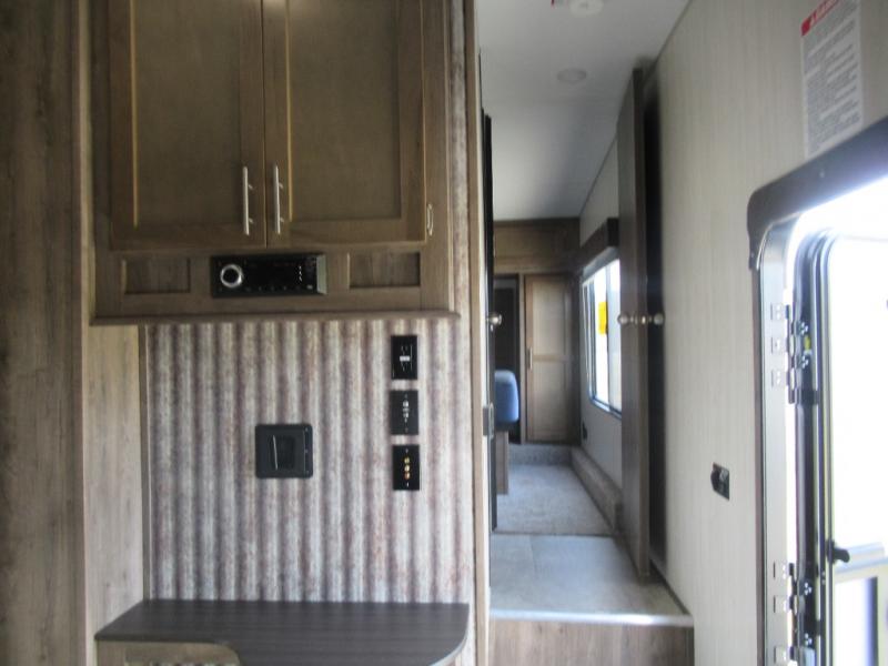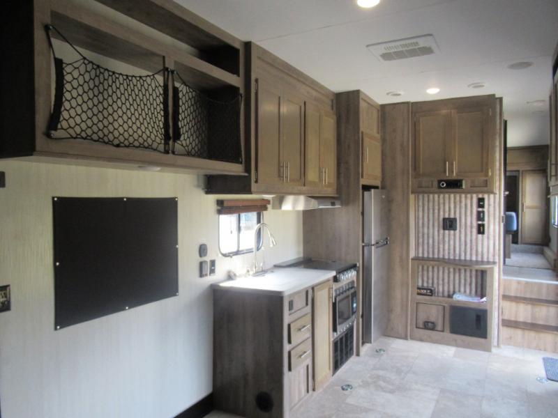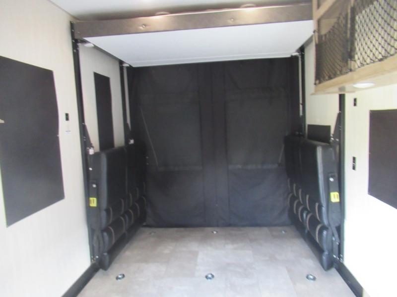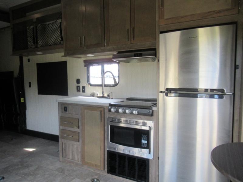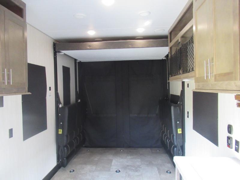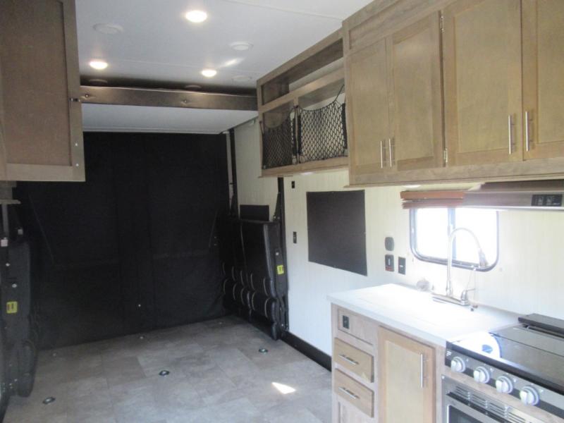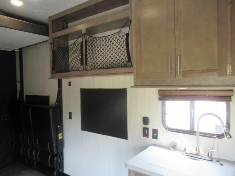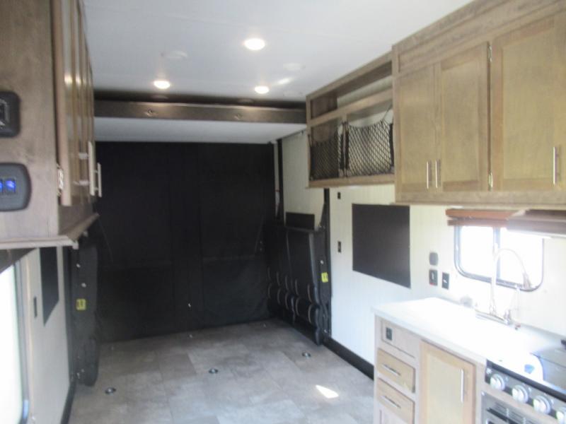 When you are ready for your next adventure, load up your off-road toys in the cargo area. You will find up to 18'9" of toy parking space that converts into your living and kitchen area once the toys have been unloaded. You can then easily set up the two rear roll-over sofas and removable dinette table where you can eat your meals, and in the private master suite you will find a queen-size bed, two wardrobes, and an overhead cabinet. There are more features to see, and options to choose from to customize this toy hauler just the way you like.