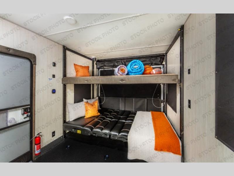 For any outdoor adventure you will want a Vengeance Rogue toy hauler travel trailer by Forest River! Each model features a ramp door patio system providing you an above ground outdoor living space, and a screen wall/tent wall to separate the inside from the outside without giving up any fresh air. With the enclosed underbelly you can now camp in all types of weather, and after a day of playing outdoors, you will enjoy washing off the dirt in the outside shower. Inside you will appreciate the 8 cu. ft. refrigerator, the convection microwave oven with a glass cooktop, the multiple USB charging ports, and the 100% LED interior lighting with accents. Go Rogue today!