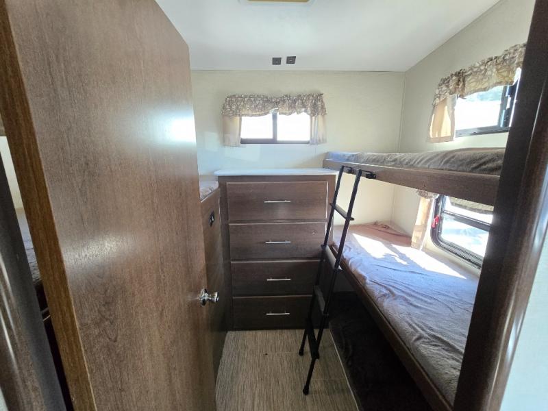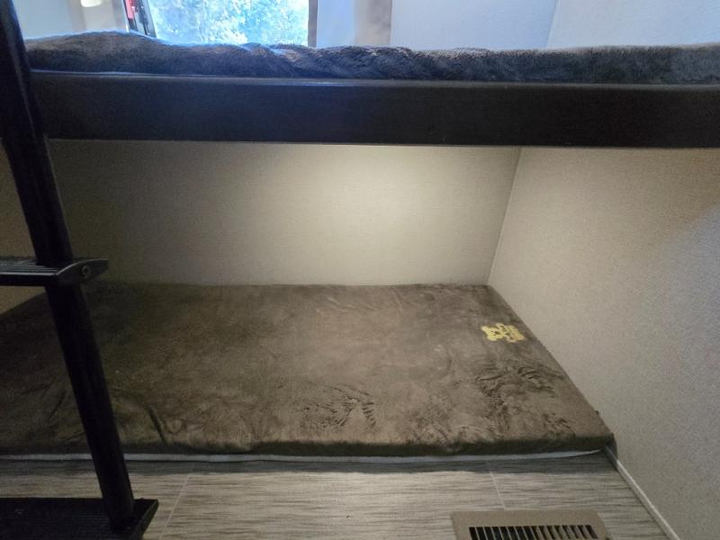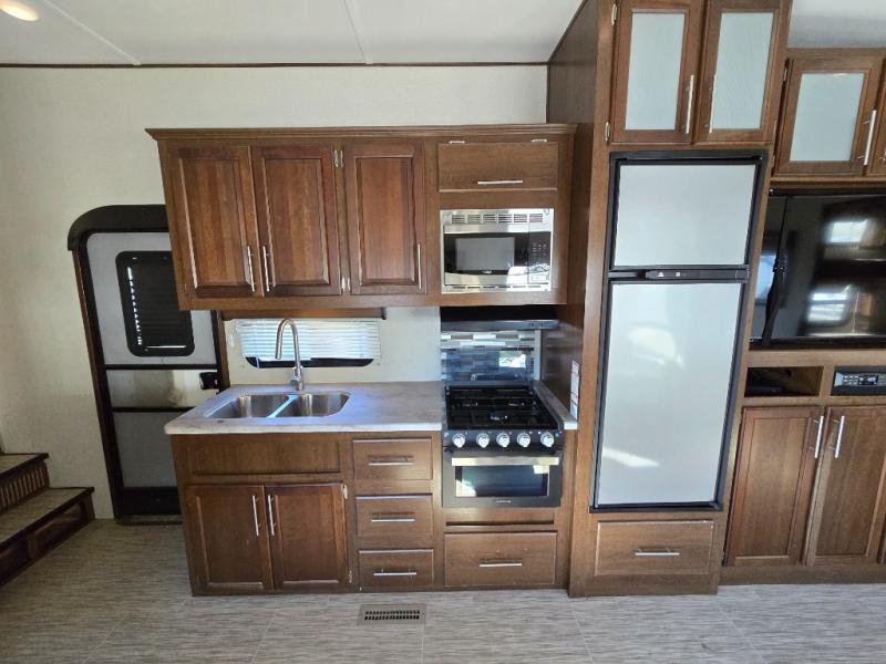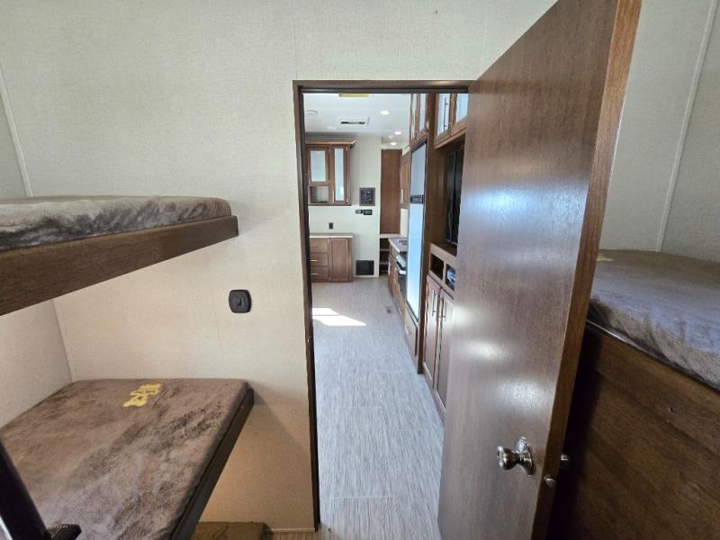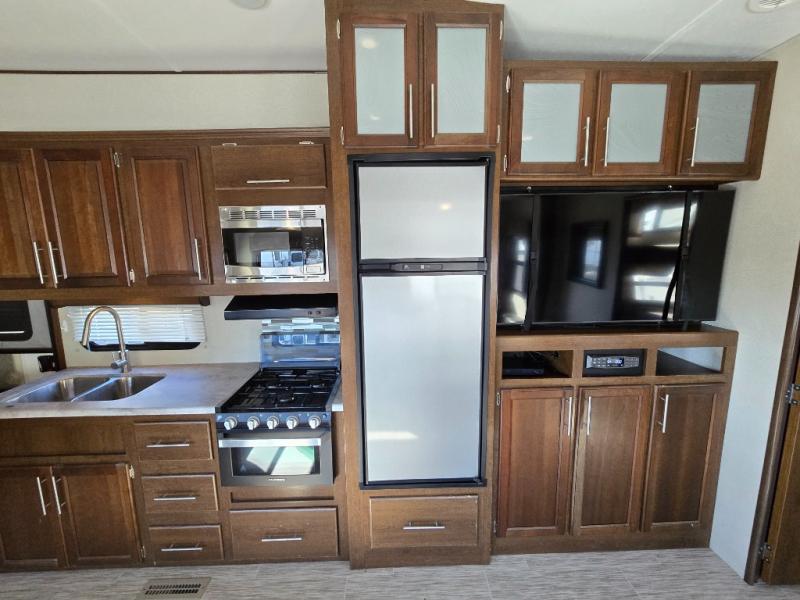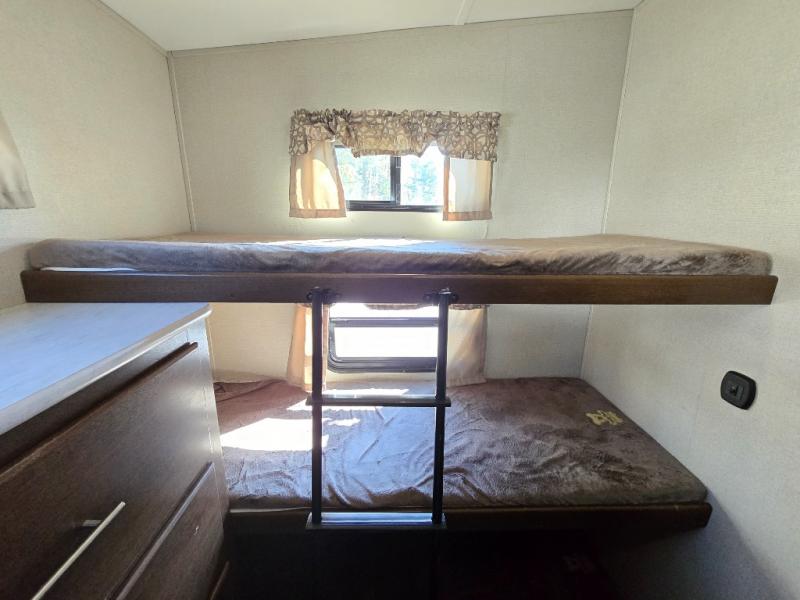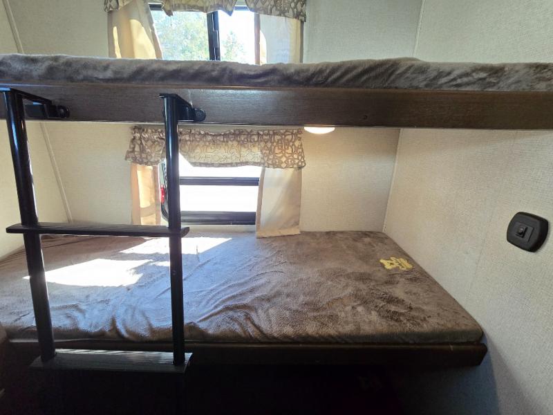 With this Wildcat Ultra-Lite fifth wheel, you get so much more than just a unit to take your travels in: you get the ultimate camping experience. Because of the rear, private bunkhouse with four bunk beds, you have plenty of room to invite guests to join you on your next weekend getaway, and in the front of this unit you will find your own escape as you sleep peacefully on the king-size bed in the private bedroom. Because there have been large wardrobes and closets added throughout this unit, you will always be able to bring along any supplies or luggage that you need, and for those days when you want to spend a little more time basking in the warm sun, the outdoor kitchen will be your favorite place to prepare dinner for the family.