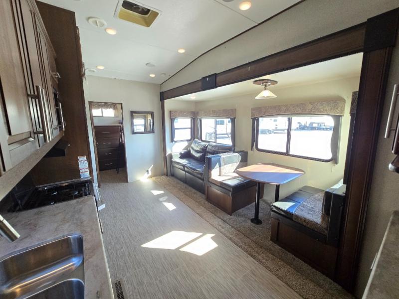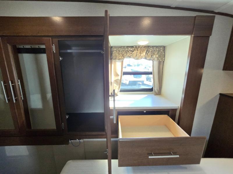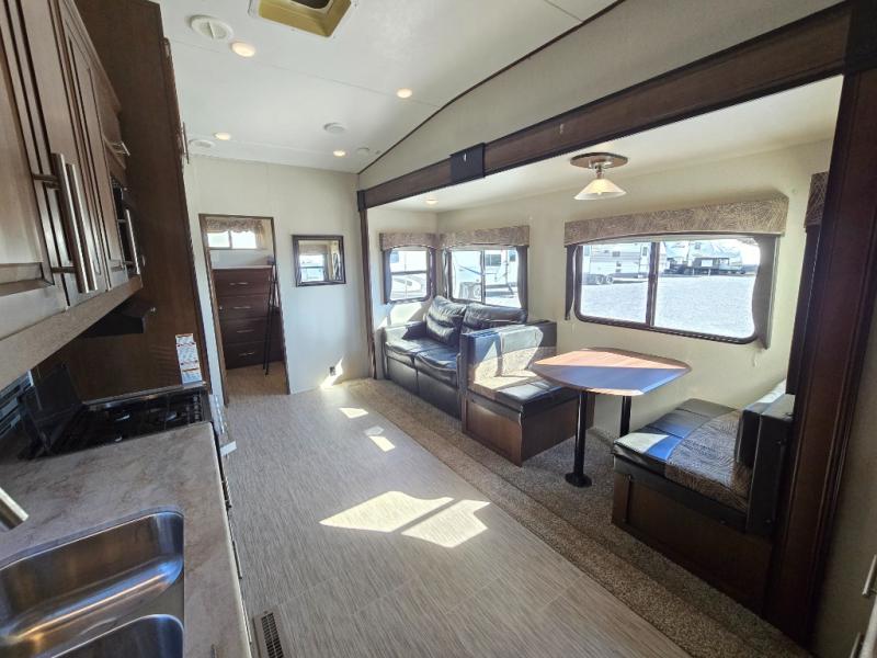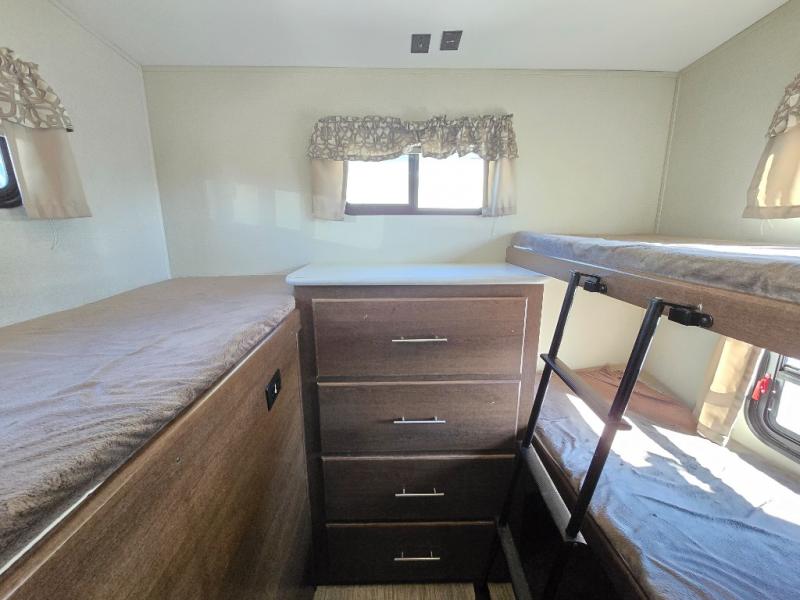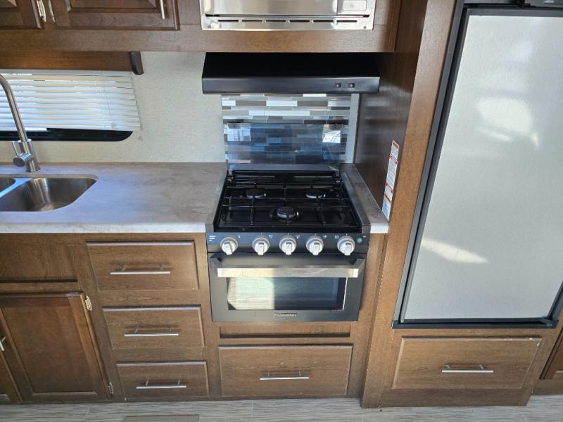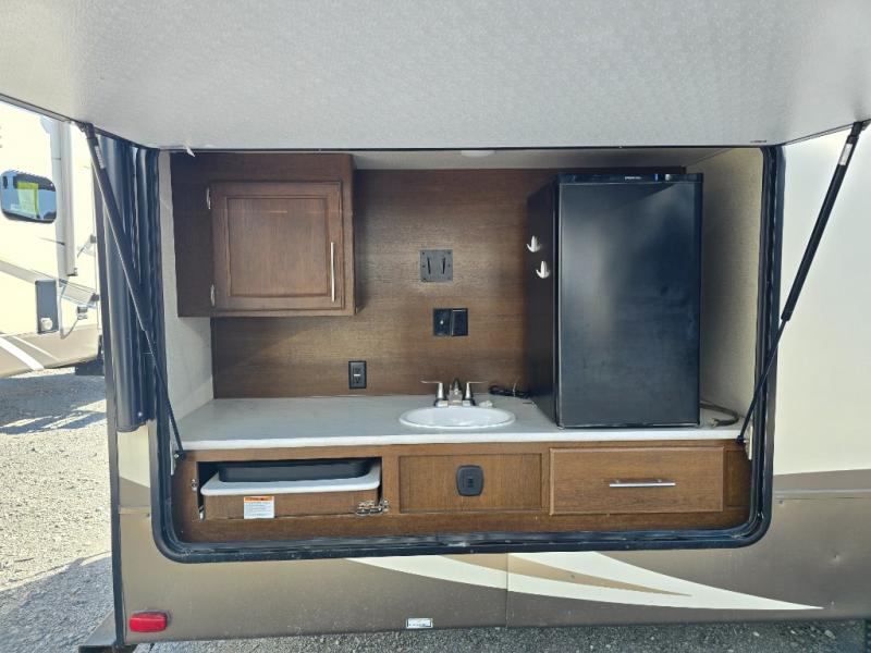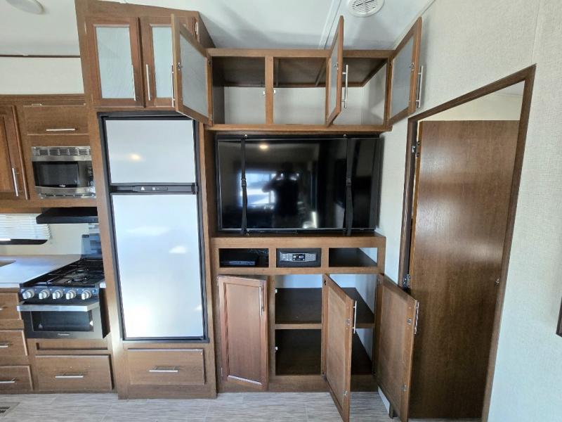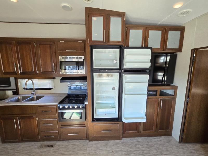 With this Wildcat Ultra-Lite fifth wheel, you get so much more than just a unit to take your travels in: you get the ultimate camping experience. Because of the rear, private bunkhouse with four bunk beds, you have plenty of room to invite guests to join you on your next weekend getaway, and in the front of this unit you will find your own escape as you sleep peacefully on the king-size bed in the private bedroom. Because there have been large wardrobes and closets added throughout this unit, you will always be able to bring along any supplies or luggage that you need, and for those days when you want to spend a little more time basking in the warm sun, the outdoor kitchen will be your favorite place to prepare dinner for the family.