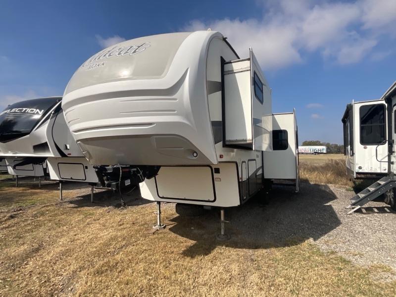 With each Wildcat Maxx Half-Ton fifth wheel by Forest River, you will be pleased with the executive kitchen, complete with stainless appliances, residential shaker-style hardwood cabinet doors, and a residential kitchen backsplash, plus much more. The units also include a flat floor bedroom, which eliminates the steps on the side of the bed to easily stand up. Each model has been constructed with a heavy duty I-beam chassis, an aerodynamic gel-coated fiberglass front cap, and a fully enclosed underbelly, plus each model includes the Climatech Cold Weather All Seasons Insulation package, and has been pre-wired for solar power and a back-up camera!
