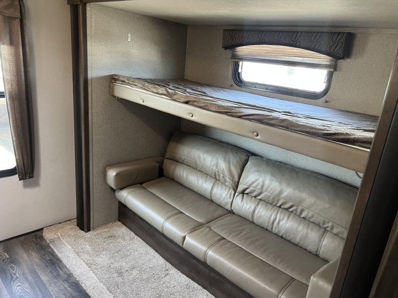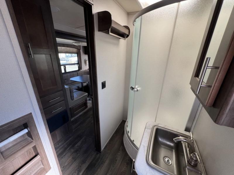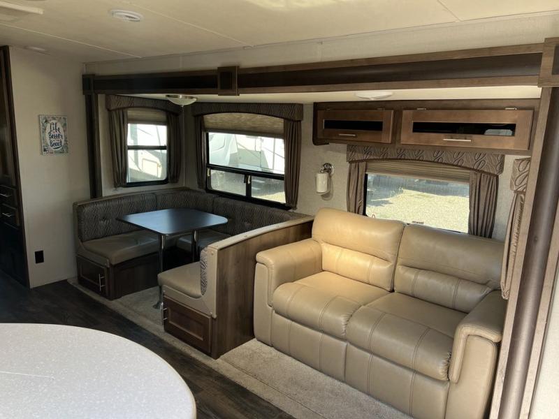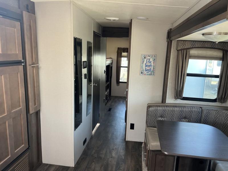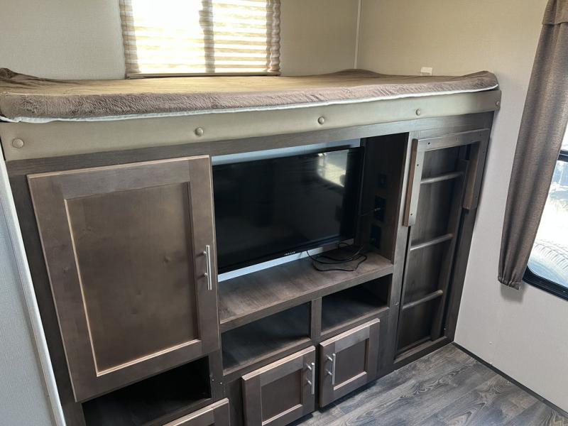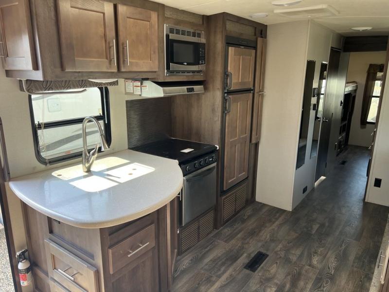You can cook inside with full amenities or outdoors on the outside kitchen, the choice is yours! Just imagine relaxing under the awning during the daytime or even at night thanks to the LED lighting while the kids play around the campsite. You will appreciate the exterior entrance into the bathroom, plus the second entry into the main living and kitchen area is super close to the front bedroom. You will put the USB/12V charging center to good use when wanting to keep your phones charged to take pictures. Come see what else will make this the perfect RV for you and your family!