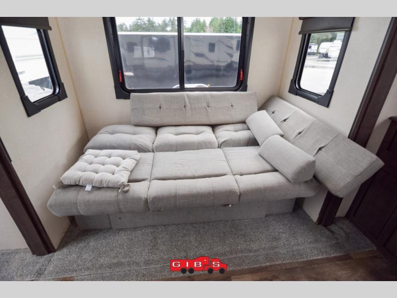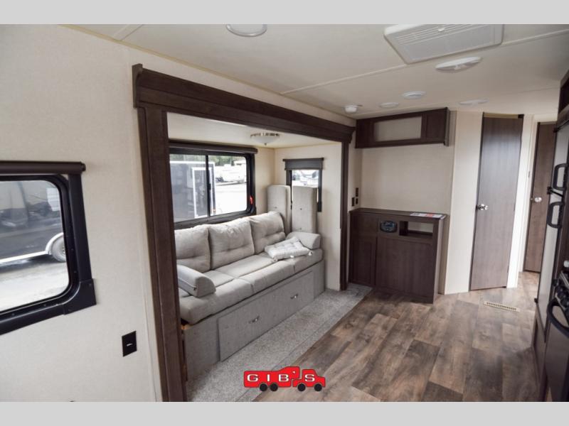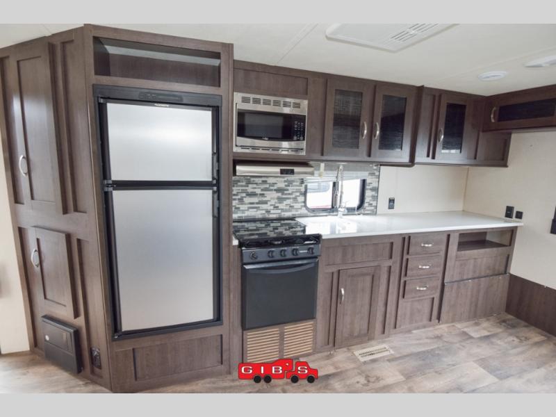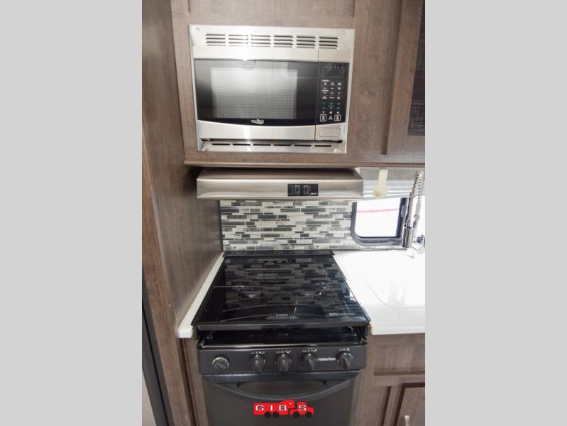 You are going to love camping with your family in this travel trailer! The kitchen features plenty of counter space, a three burner range, plus a pantry for snacks. With the queen bed in the private bedroom, the U-shaped dinette, plus the couch, you can comfortably sleep six people each night. The slide out in the living area opens up the rear living area, and the full bath is the perfect size for everyone.