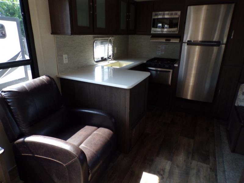 This single slide out travel trailer is perfect for your family looking for a new adventure. Mom will enjoy the rear kitchen that includes a pantry and a three burner range. The dinette within the slide out is perfect to enjoy meals at and when you're through, you can relax on the sofa. This unit also includes two recliners, so you'll feel right at home! You'll love the full bath in this unit, and the queen bed in the private bedroom is perfect for a good night's rest.