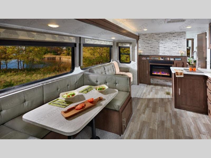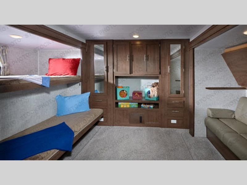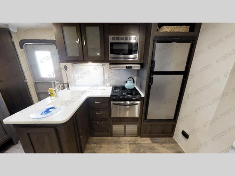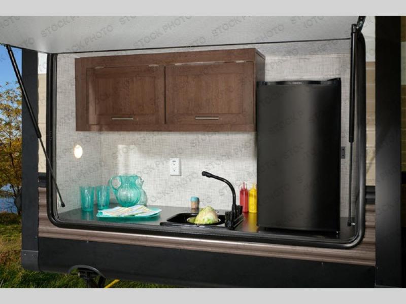 With any Wildwood travel trailer you will be pleased with new upgraded Shaw linoleum, convenient stow and go storage under the dinette, and USB ports in the bedrooms and bunks to keep you connected to the outside world. Each unit features a 10.7 cu.ft. 12V Everchill stainless steel refrigerator, new modern cabinet door hardware, and a stainless steel roll up sink cover. You'll appreciate the pass through storage for all your camping gear, an LED awning light for evenings outdoors, and each model comes with Furrion backup camera prep to make parking hassle free.