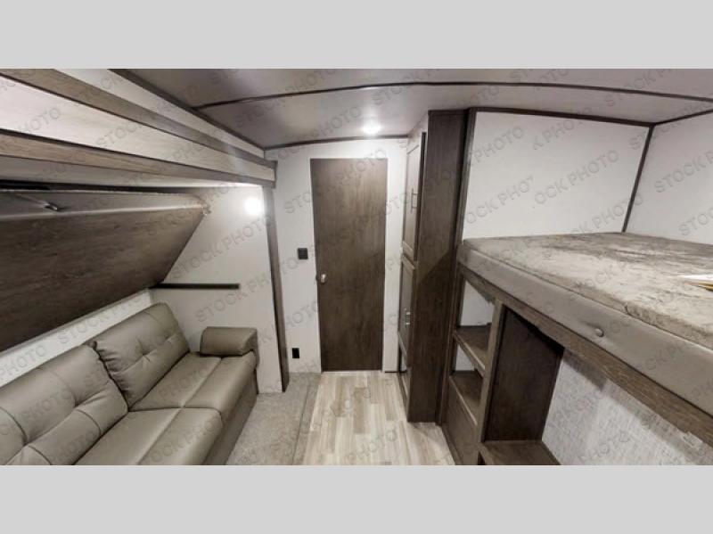 For a truly fun camping experience with the whole family, take along this travel trailer that can sleep ten people each night. The kids will make private bunkhouse their own, while you can sleep on the queen Denver pillowtop mattress in the private bedroom. There is also a u-shaped dinette and a tri-fold sofa that can both be converted to additional sleeping space. This unit includes a full bath plus a half bath so there will be no more waiting lines. Come see all this travel trailer has to offer, including a fireplace, a large pass through storage for all your gear, and a convenient laundry chute!