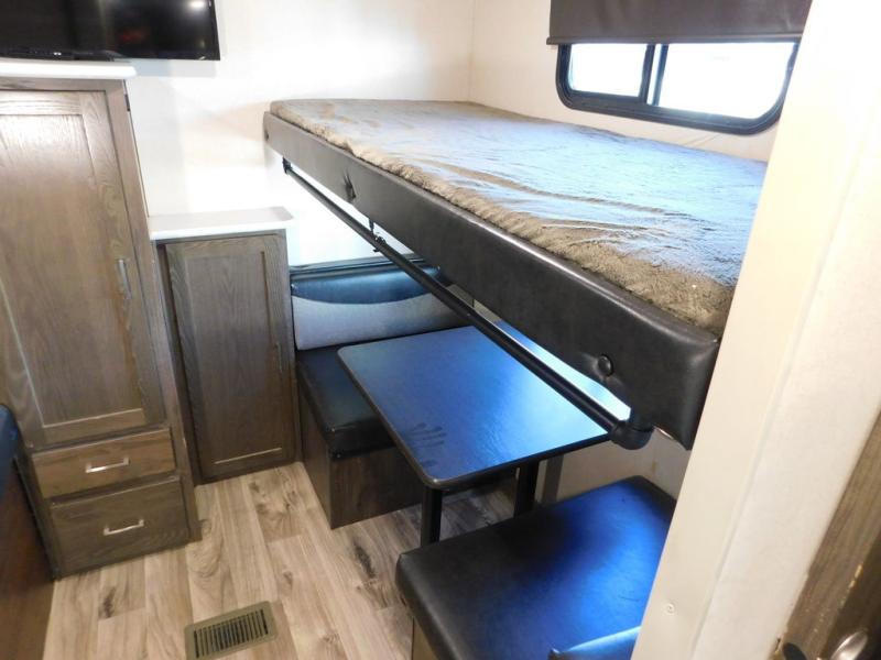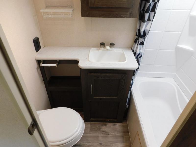 With any Wildwood Heritage Glen Hyper-Lyte travel trailer by Forest River, you will feel right at home with Shaw residential stain resistant carpet, Shaw Guardian hickory way linoleum, and a Jensen 32" HDTV with Bluetooth CD/DVD/FM/USB player and bar speakers. Every unit comes standard with a queen Denver 9" pillowtop mattress for a peaceful night's rest. You will love that you can bring everything along with these units thanks to the extra-large pass through storage in most models, and every travel trailer features a power tongue jack with an LED docking light that is super convenient when it's time to hitch up and head home.
