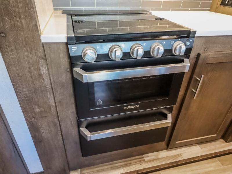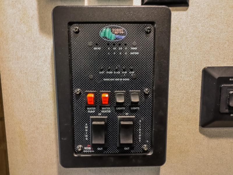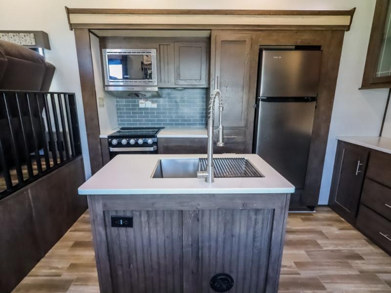 When you want time away from home, but yet want the comforts of home, then choose a Wildwood Heritage Glen LTZ travel trailer or fifth wheel by Forest River. These models have plenty of residential features, such as a stainless steel Everchill residential refrigerator, decorative Midnight Metal subway style backsplash, stain resistant carpet in the living room, and Shaw Guardian Hickory Way linoleum in the kitchen. Along the exterior you will find a full wrap around aerodynamic front cap with LED lights, a gel coated fiberglass exterior, and marine grade exterior speakers with a blue LED light. The electric awning with LED lights provides plenty of shade and allows you to instantly have a nice outdoor living space and the outside shower provides a place to wash off the sand from the lake or fill the dogs water bowl!