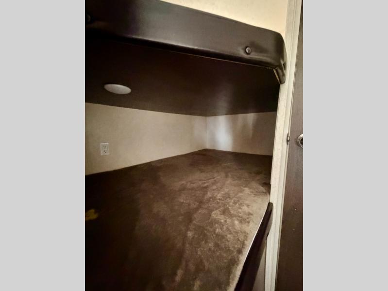 Your family of eight will enjoy your camping trips when you choose this Wildwood X-Lite 261BHXL travel trailer. There is plenty of sleeping space throughout from the rear double bunk beds which sleep four people to the sofa, the booth dinette, and the front bedroom with a queen bed that has wardrobes on either side and a shelf above. A few key features outside include the pass-through storage area as well as the 12' awning which provides plenty of shade and is a great gathering spot for your family in the evening. You can also choose to add the optional camp kitchen and more!
