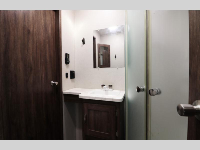 Premium exterior build – features such as Azdel laminated sidewalls, one-piece TPO roof, heated & enclosed under-belly, nitrogen filled tires and a smart electric tongue jack.