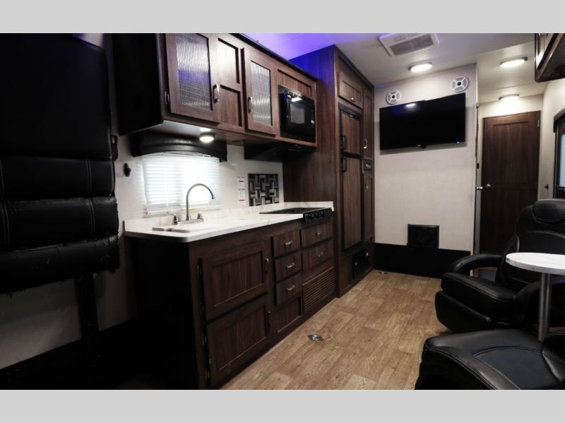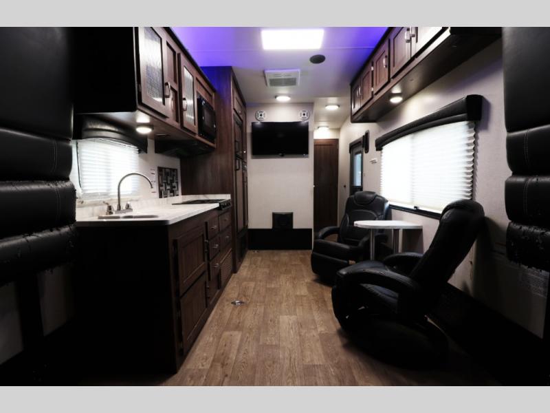 Versatility: Whether you’re using it for a family getaway or hauling your toys, this trailer does it all. That roomy garage for ATVs or bikes + full-featured kitchen/living area means you don’t compromise.
