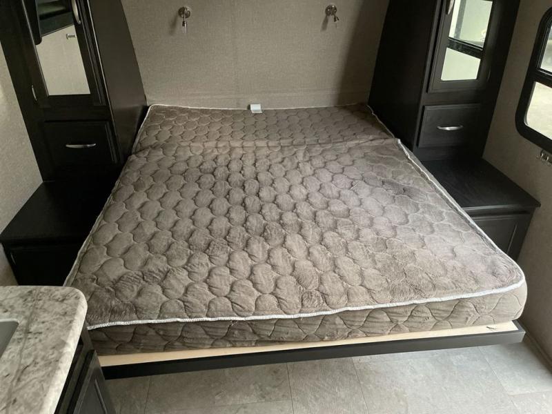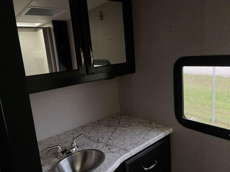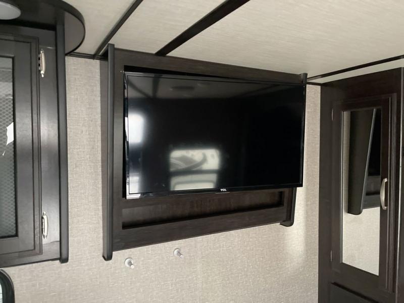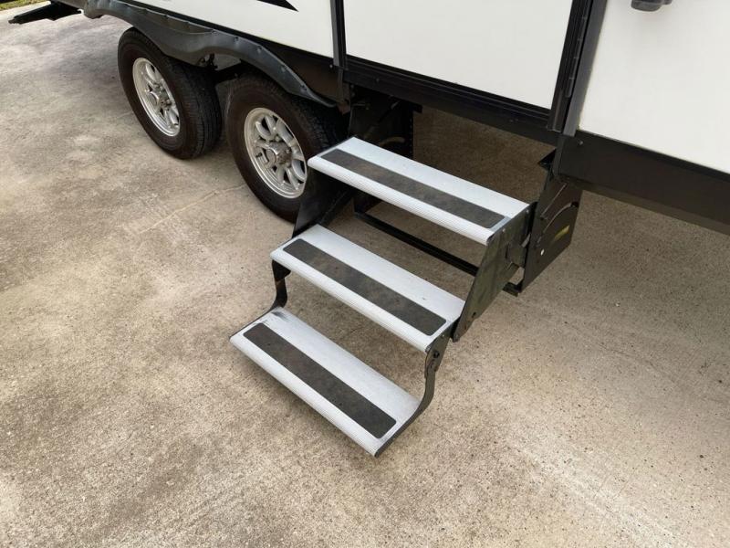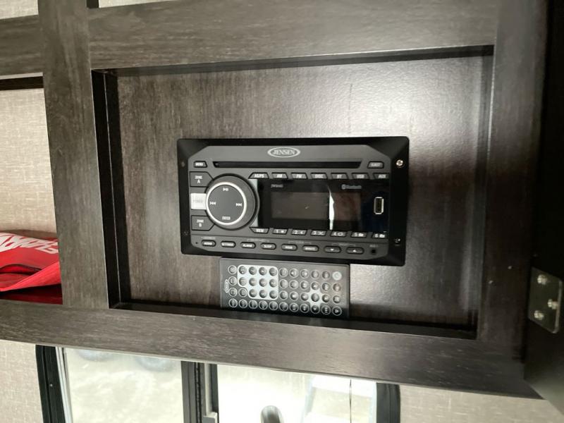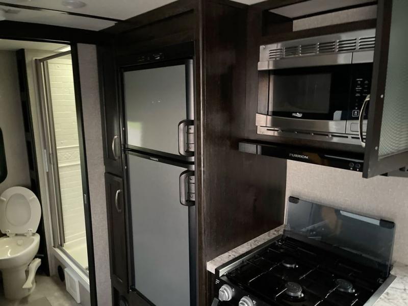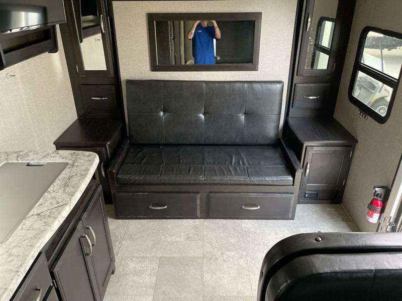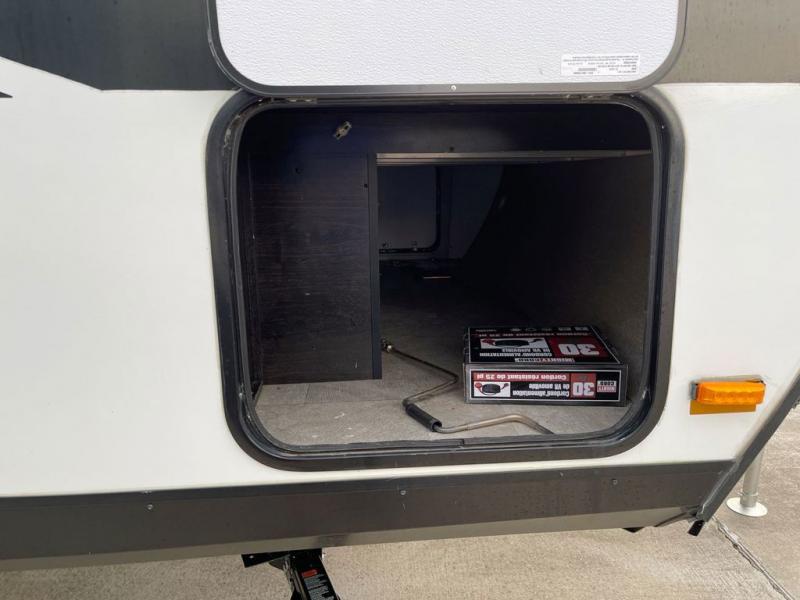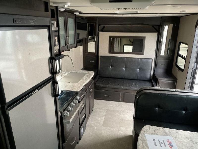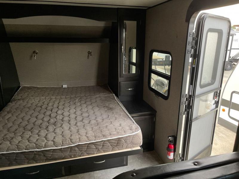 If you desire style and luxury on your camping trip then this travel trailer is what you need! It features a Murphy bed so that you can enjoy plenty of seating/moving around space during the day while still having a bed at night. Another convenient feature is the booth dinette, you can enjoy your meals at it or transform it into another sleeping space also. Don't worry about where you will keep your supplies because the pass-through storage has you covered! If you have kids, then you will love having the outdoor spray port to rinse them off before tracking dirt and sand into the travel trailer.