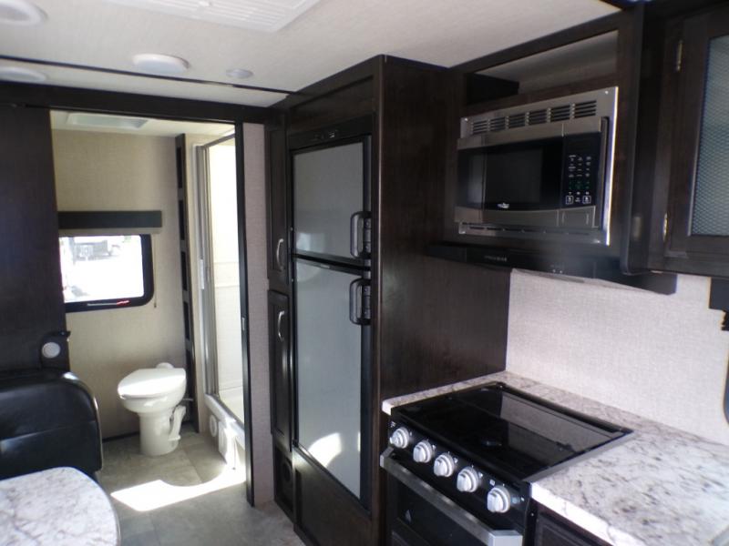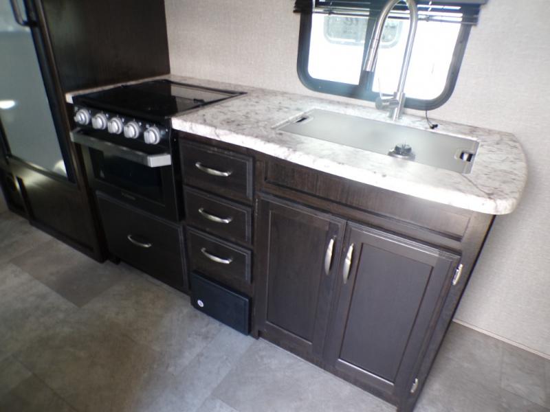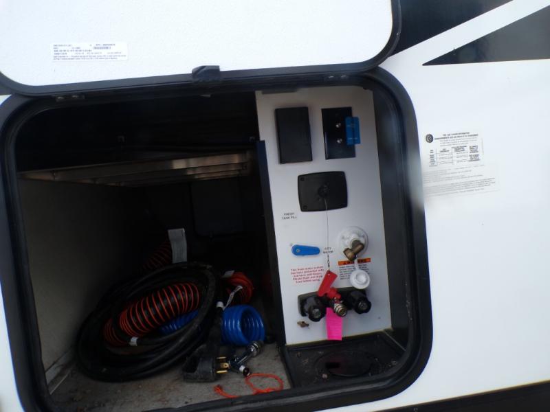 If you desire style and luxury on your camping trip then this travel trailer is what you need! It features a Murphy bed so that you can enjoy plenty of seating/moving around space during the day while still having a bed at night. Another convenient feature is the booth dinette, you can enjoy your meals at it or transform it into another sleeping space also. Don't worry about where you will keep your supplies because the pass-through storage has you covered! If you have kids, then you will love having the outdoor spray port to rinse them off before tracking dirt and sand into the travel trailer.
