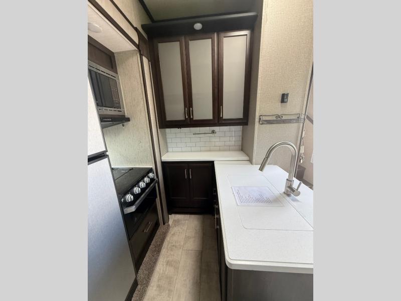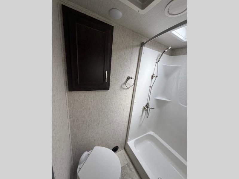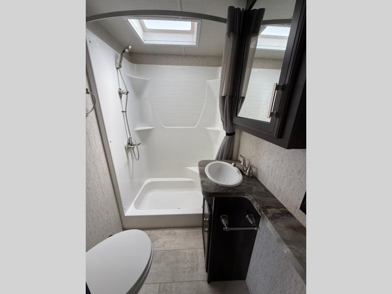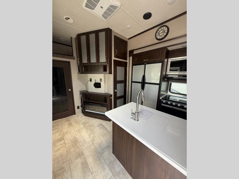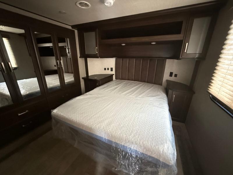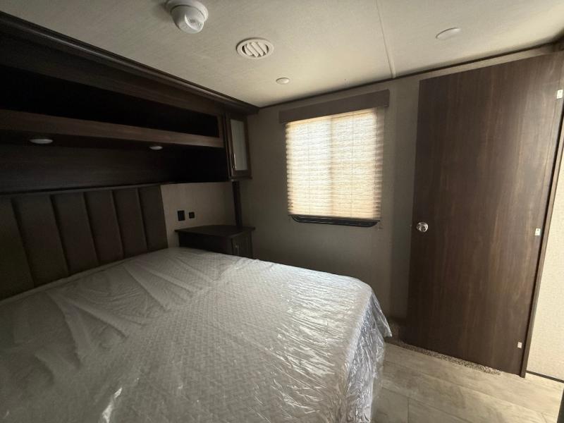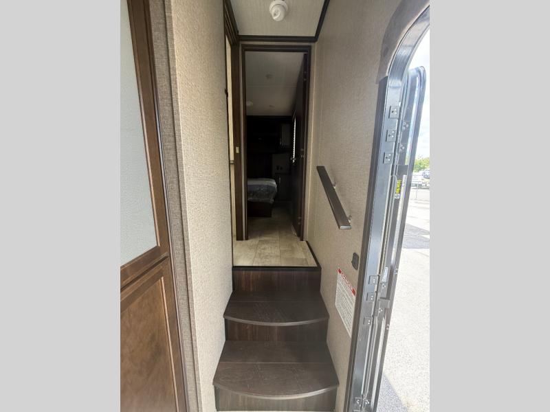 Just imagine the fun you will have with this Momentum G-Class set up at any off-road park. From the 14'6" separate garage that includes a half bath, a side man door as well as seating and sleeping space, plus a loft above, you will have your own area to do what you like. The rear ramp door can even be converted into a patio if you need more outdoor living space. The separate living area offers a fireplace, theatre seating, and kitchen appliances away from the dirty garage floor. You will also be able to stay clean and ready for the next ride with the full bathroom next to the front master retreat with plenty of storage for clothing. You might even choose to add a washer and dryer option to keep everything clean while away from home. Take a look!