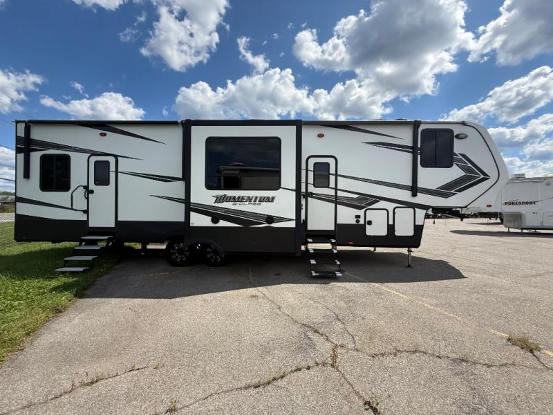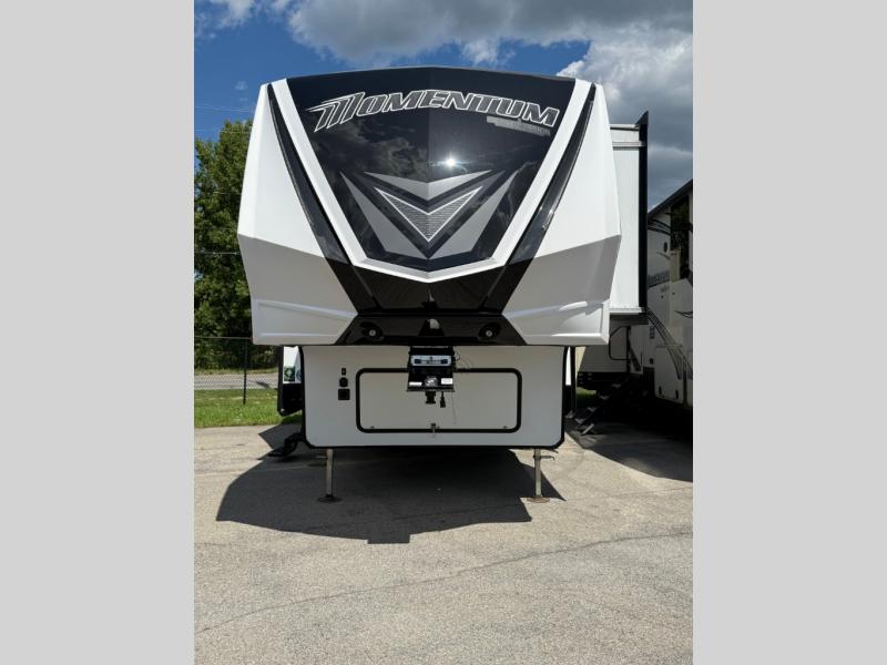 Looking for adventure and fun, this Momentum G-Class fifth wheel toy hauler by Grand Design will help you find it! From the Rockford Fosgate speakers offering 700-watts of power, the 30 gallon fuel station with an interior and exterior gauge, the dovetail rear end, the mandatory Insulation package, and all the inside features, you can explore during any season you choose. Take your favorite model off-road today!