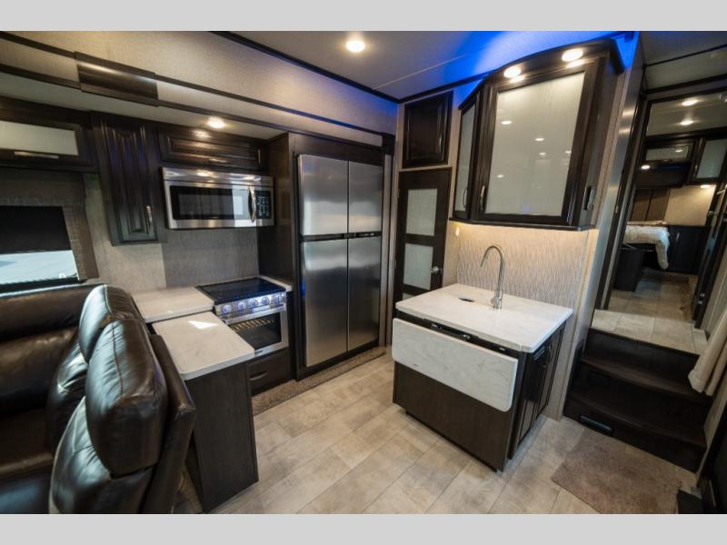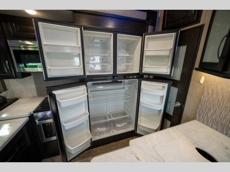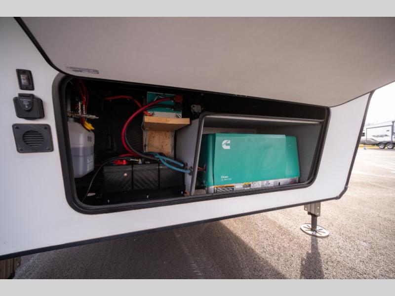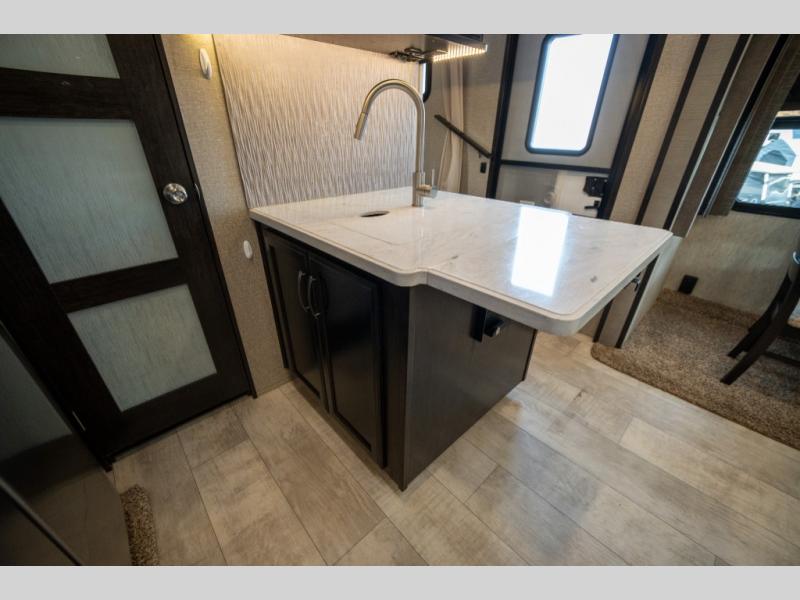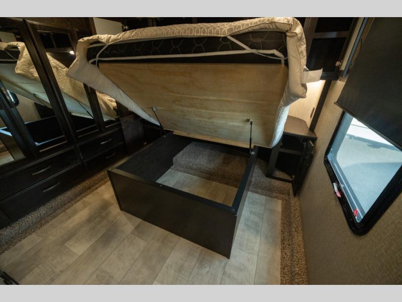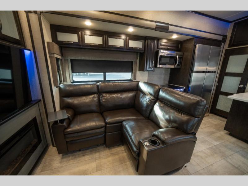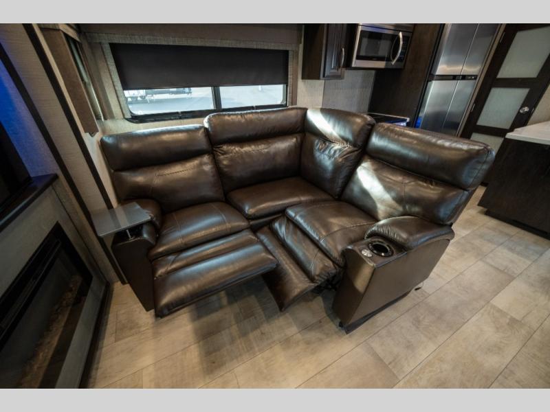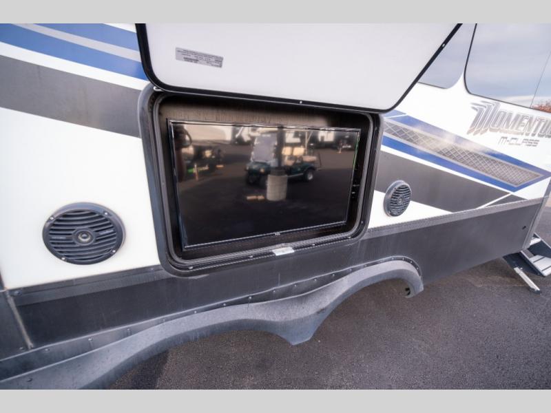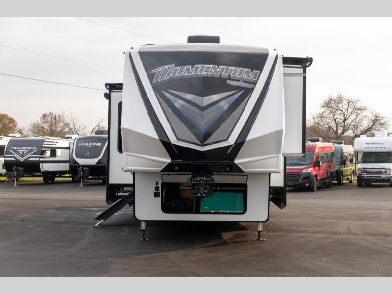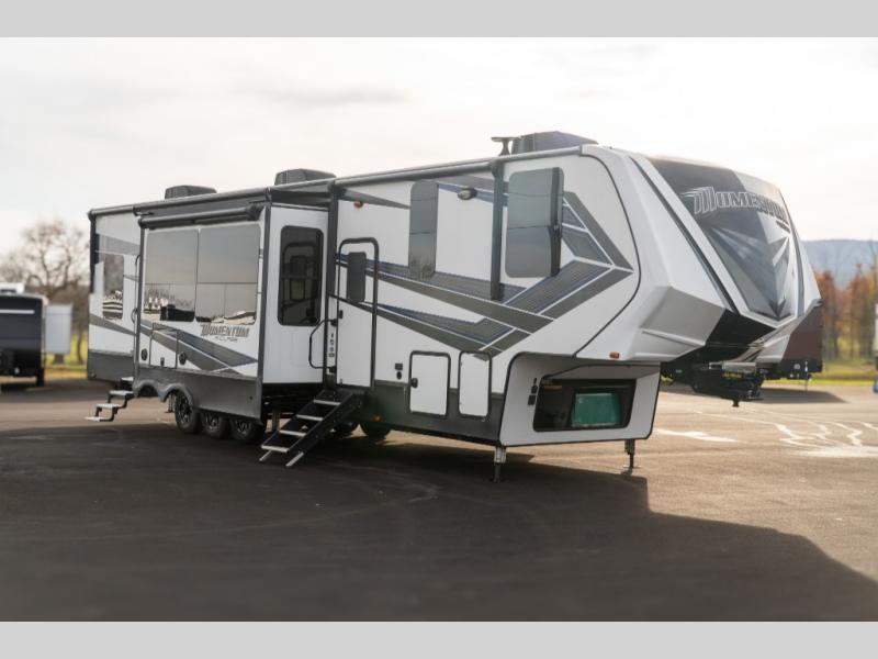 With any Momentum M-Class toy hauler fifth wheel you will enjoy extraordinary living with extreme playtime with the Weather-Tek insulation for four seasons of protection, and a fully enclosed fuel pump station to keep the fun going the whole time. The Tuff-Ply garage flooring is gas and oil resistant, plus triple insulated. You will find 2,500 lb. rated flush-mount tie-downs to keep your toys secure while moving down the road. The interior includes a sofa with headrest and removable swivel table, a convection microwave, a central vacuum system with tools and a dust pan, and a satellite/solar roof access channel to mention a few highlights. Any Grand Design Momentum M-Class allows you to keep your active lifestyle no matter where you decide to stay!