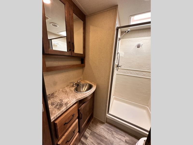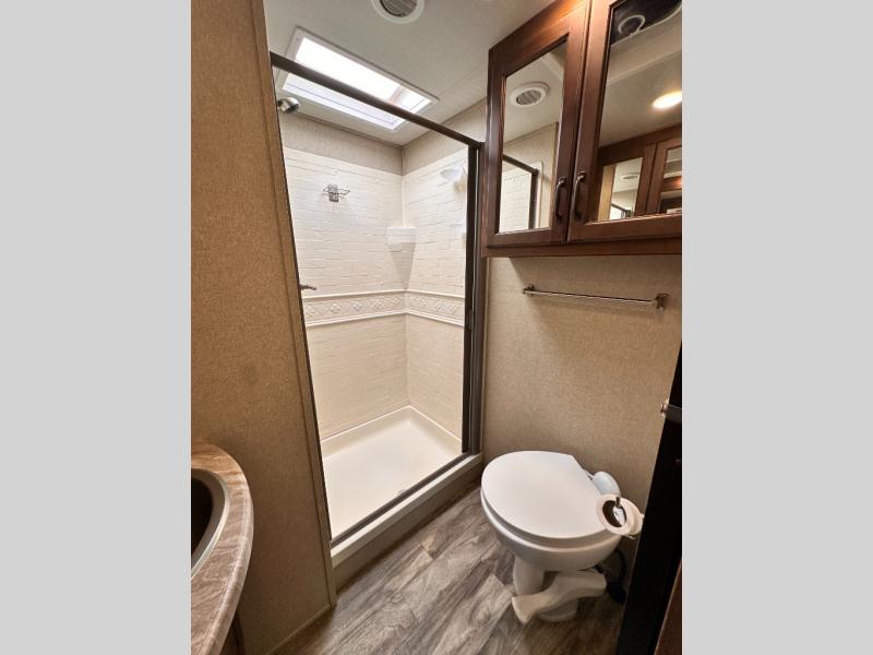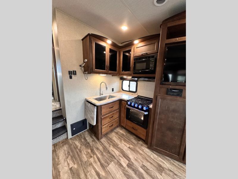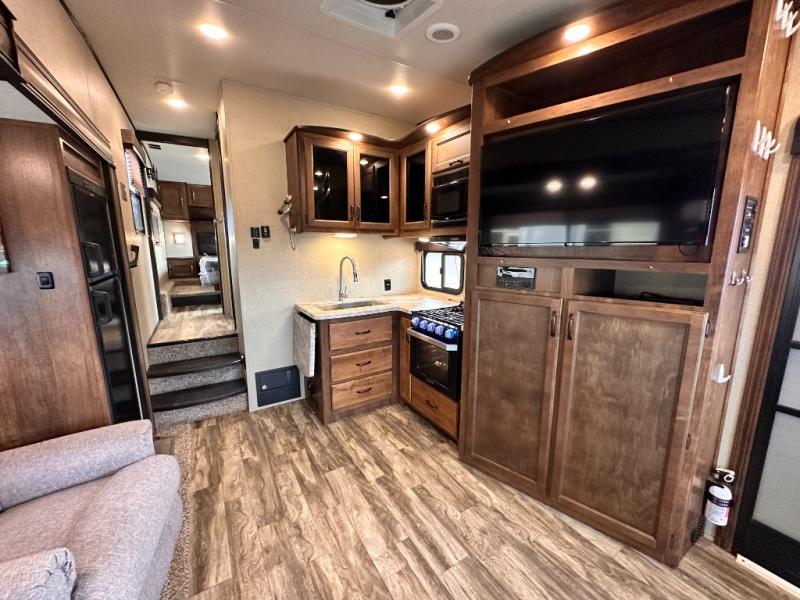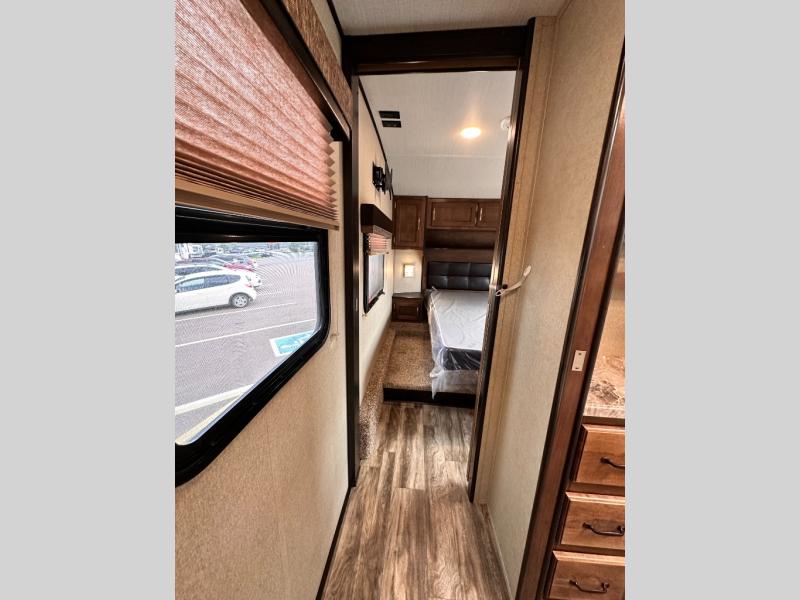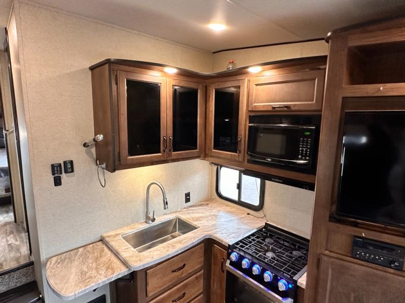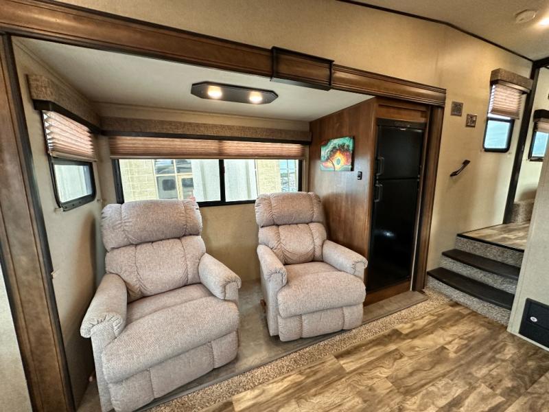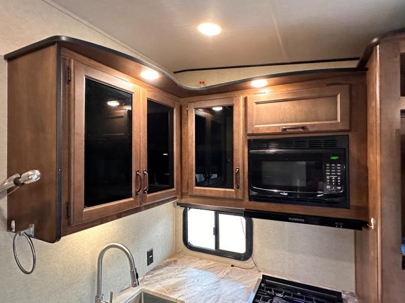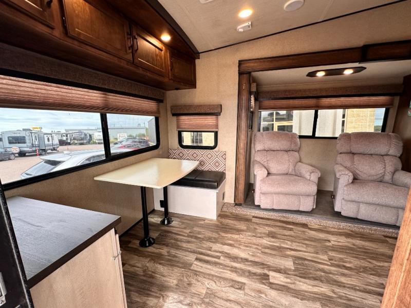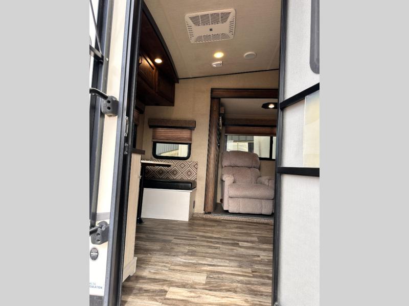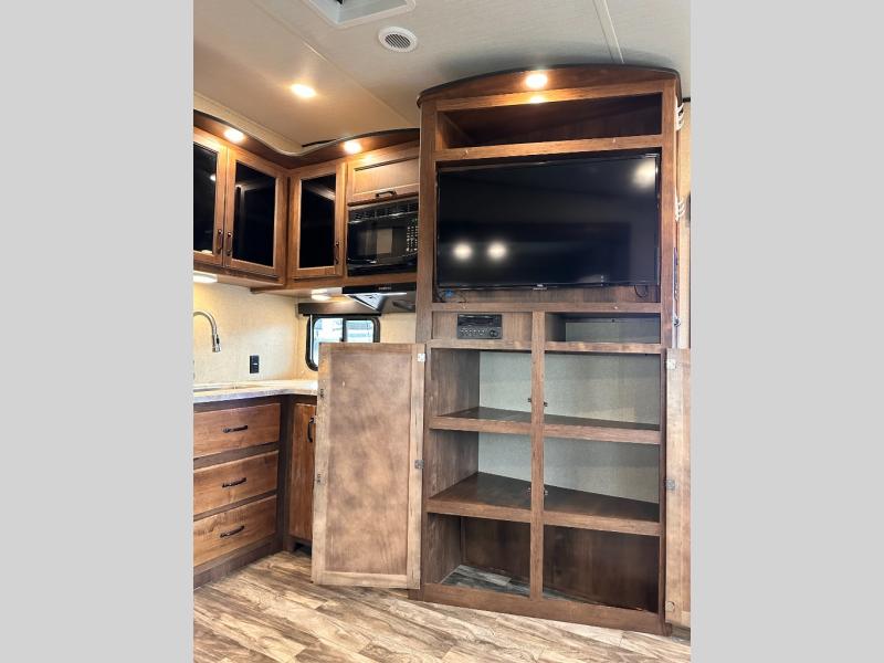 Imagine your family playing games on the 80" U-shaped dinette while you are relaxing on one of the theatre seats and watching your favorite team on the LED TV. This fifth wheel allows you to relax with inside comforts when you aren't outside enjoying the great outdoors. You will have the convenience of cooking your own meals and getting cleaned up in the full bathroom anywhere you decide to stay. There is plenty of storage throughout the interior, as well as in the exterior unobstructed pass-through compartment for those larger items. It's time to stop imaging and start living your dreams of traveling with your own accommodations to see new places!