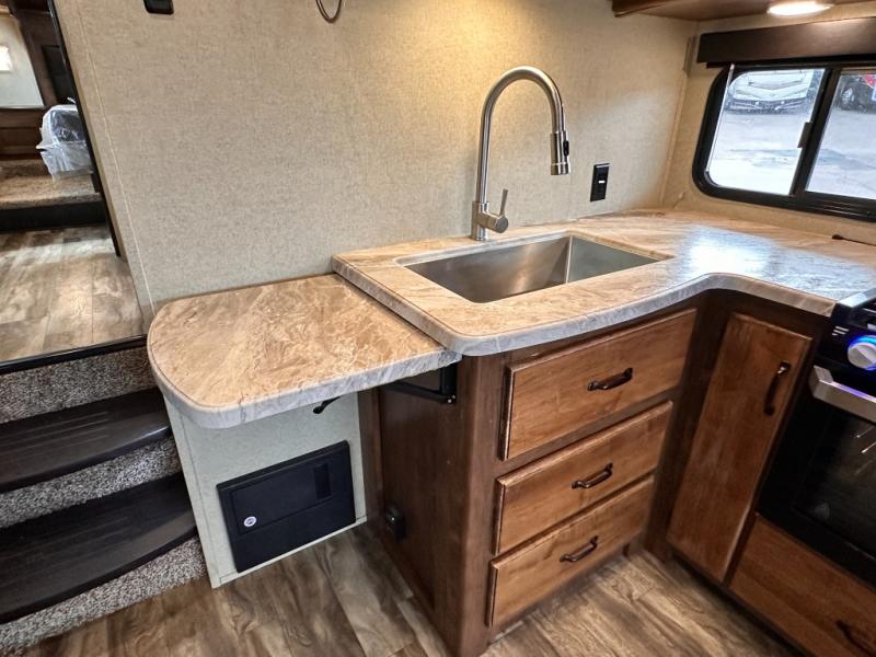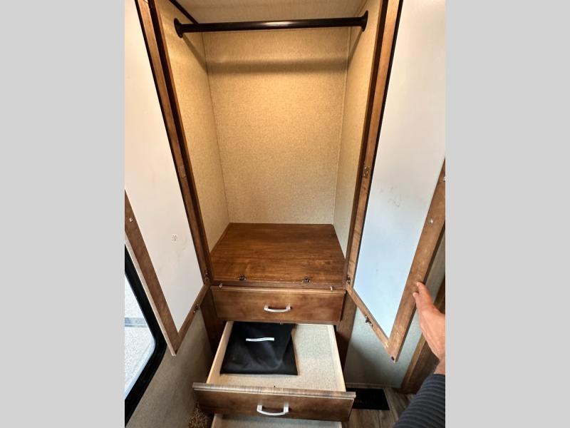 With any Reflection 150 Series fifth wheel by Grand Design, you will enjoy the ease of using your short-bed half-ton truck to tow thanks to the 90 degree turning radius swivel pin box. The Universal All-In-One docking station, LP Quick Connect, and One-Touch electric awning with LED light make setting up and packing up easy for those weekenders or full-timers that like to move around to see the countryside. Inside you will find that the bedroom is complete with a king-size wardrobe, a queen bed, and an oversized under-bed storage area. The large panoramic windows on the slide allow you to view the beautiful scenery that you've chosen to camp next to, and the Arctic 4-Seasons Protection package allows you to camp anywhere and anytime of the year.