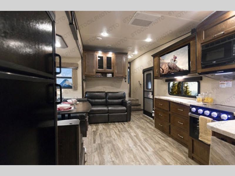 This Reflection 150 Series fifth wheel is the answer to your family's camping needs. Imagine sleeping in a queen bed while the kids have their own private bunkhouse on the opposite side. You have the choice of cooking inside with all the kitchen amenities or outside on the exterior kitchen. You all can meet in the middle to plan for the outdoor fun while eating at the 80" U-shaped dinette or tri-fold sofa which also provides extra sleeping space as well. Come see what else you will love!
