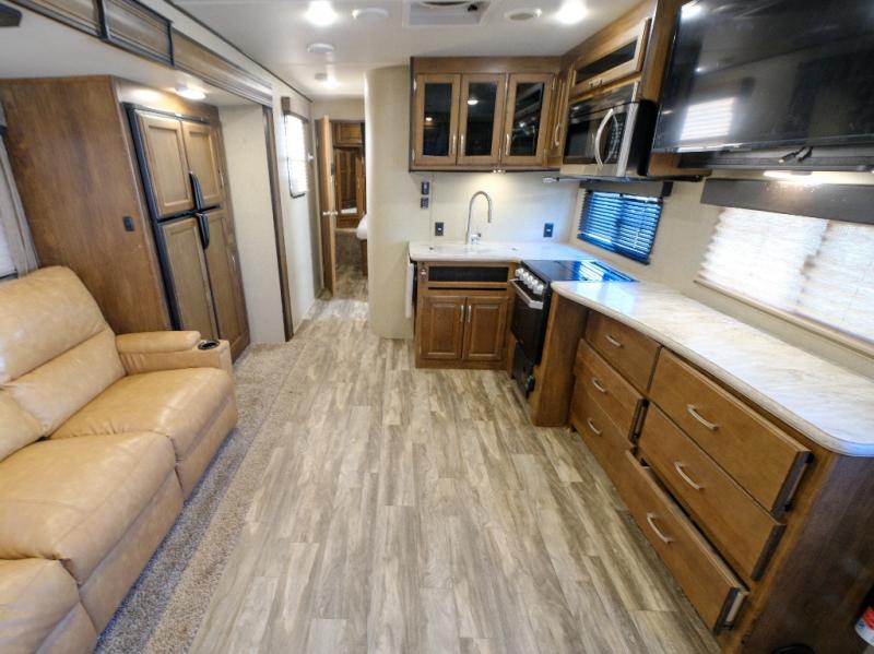 Each Reflection by Grand Design offers luxury along with providing easy towing with the aerodynamic front cap including Max Turn Radius to your favorite destinations. The Universal All-In-One docking station, LP Quick Connect, and One-Touch electric awning with LED lighting makes setting up and packing up easy for those weekenders or full-timers that like to move around. Inside, you will find the bedroom is complete with a pillowtop queen mattress, a king size wardrobe, oversized underbed storage, and much more! The Arctic 4-Seasons Protection package allows you to camp anywhere and anytime of the year. Come choose your favorite model today!