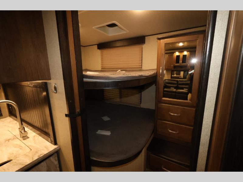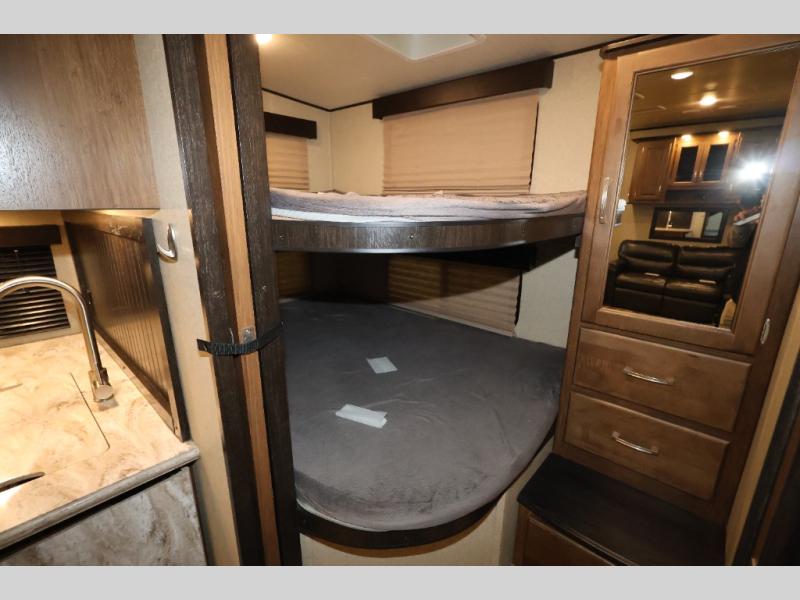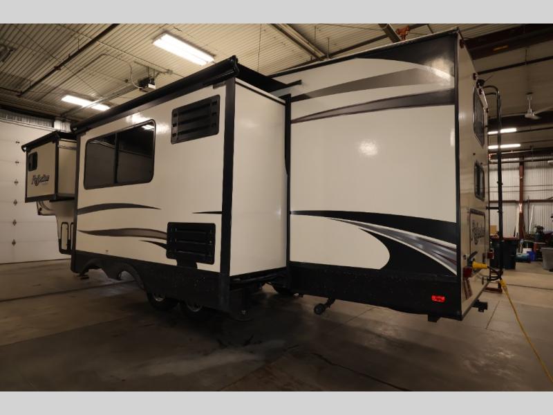 If you enjoy traveling to a state park, RV park, or even a winery, you will love all the luxurious features, plus a private bunkhouse with double size beds for the kids and their friends. You can even host more sleepy guests on the tri-fold sofa and U-shaped dinette once folded down for the evening in this Refection 28BH fifth wheel. You can only imagine the choices you will have inside and outside to store all your items including the unique exterior rear storage. You can even choose to cook outside on the outdoor kitchen while relaxing under the awning. If the weather moves you inside, you will have plenty appliances as well as a 40" TV and fireplace to keep you entertained and warm. Come see why this model is popular with larger families, and smaller families that enjoy plenty of room to themselves.