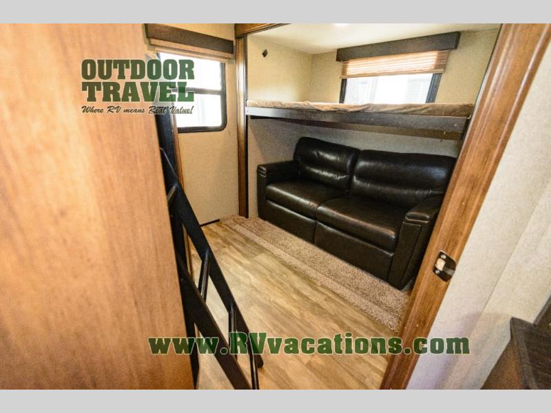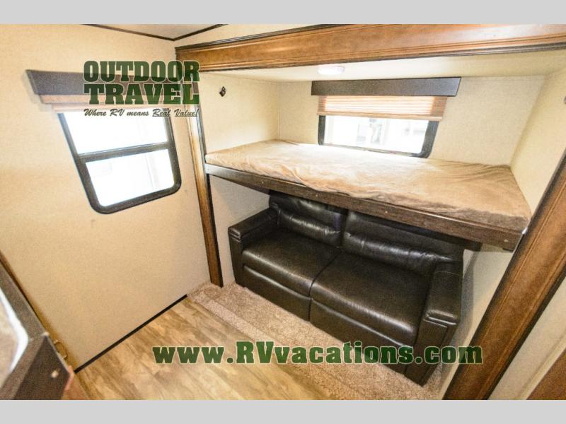 Have you been searching for a fifth wheel that has it all? Then start thinking about how your family will love all the features this Reflection 311BHS has to offer. You might even daydream about your kids and their friends in the rear bunkhouse on a rainy day or at night before bedtime. The kids will surely see themselves sitting on the tri-fold sofa or one of the upper bunks. The chef has the option of cooking inside or outside, plus there is a large sink to easily wash the dishes. You will appreciate having the half bath for the kids while you enjoy the full bathroom with dual entry. The exterior unobstructed pass-through compartment allows for more outdoor gear to be packed, and the two awnings provide extra protection from the elements. Your daydream is over, the perfect RV for you and your family is this Reflection!