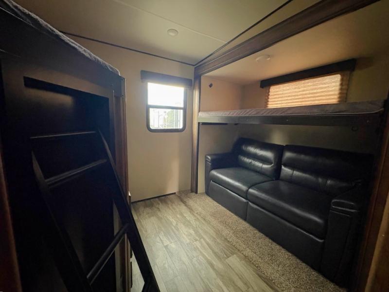 Have you been searching for a fifth wheel that has it all? Then start thinking about how your family will love all the features this Reflection 311BHS has to offer. You might even daydream about your kids and their friends in the rear bunkhouse on a rainy day or at night before bedtime. The kids will surely see themselves sitting on the tri-fold sofa or one of the upper bunks. The chef has the option of cooking inside or outside, plus there is a large sink to easily wash the dishes. You will appreciate having the half bath for the kids while you enjoy the full bathroom with dual entry. The exterior unobstructed pass-through compartment allows for more outdoor gear to be packed, and the two awnings provide extra protection from the elements. Your daydream is over, the perfect RV for you and your family is this Reflection!