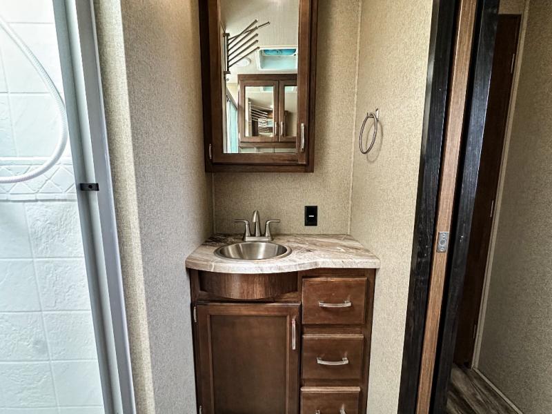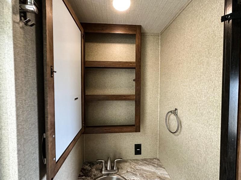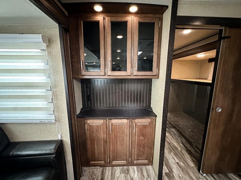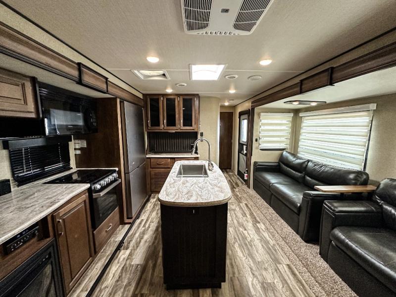 Imagine your family playing games at the dinette while you are relaxing on one of the theatre seats while watching the big game on the 40" TV. Everyone will appreciate the warmth of the fireplace as well. This Reflection 312BHTS travel trailer allows you to enjoy inside comforts while the great outdoors is just steps away. You can imagine the kids laughing in the rear bunkhouse while they sit on the tri-fold sofa, and lay on the ground or on one of the bunk beds. The cook can choose to use the inside kitchen appliances or the outside kitchen. There is plenty of storage throughout the inside as well as in the exterior unobstructed pass-through compartment. It's time to stop imaging and start living your dreams!