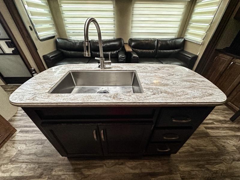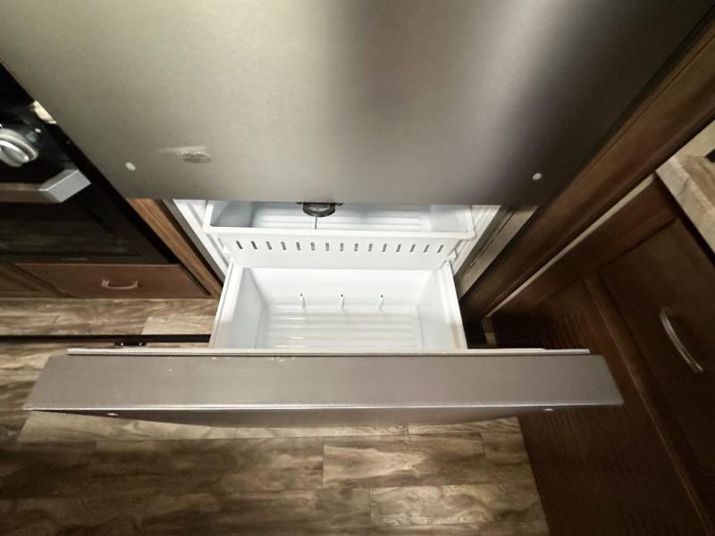 Each Reflection by Grand Design offers luxury along with providing easy towing with the aerodynamic front cap including Max Turn Radius to your favorite destinations. The Universal All-In-One docking station, LP Quick Connect, and One-Touch electric awning with LED lighting makes setting up and packing up easy for those weekenders or full-timers that like to move around. Inside, you will find the bedroom is complete with a pillowtop queen mattress, a king size wardrobe, oversized underbed storage, and much more! The Arctic 4-Seasons Protection package allows you to camp anywhere and anytime of the year. Come choose your favorite model today!