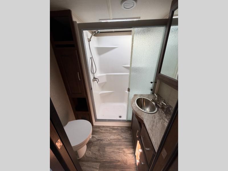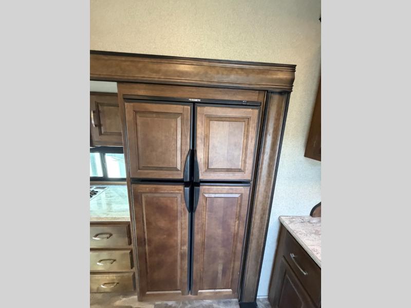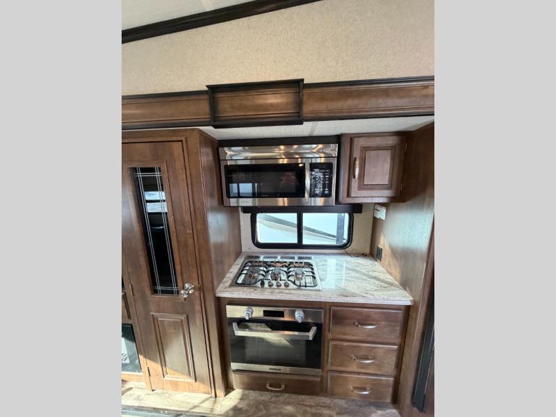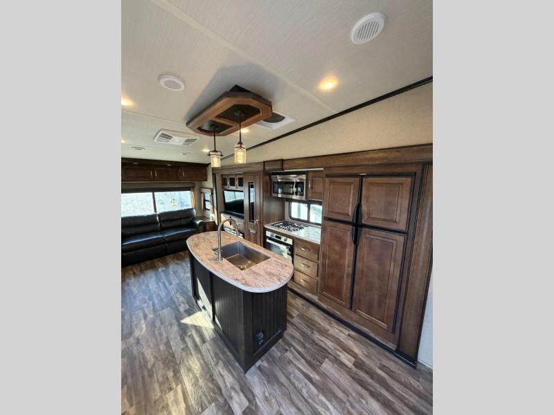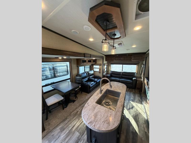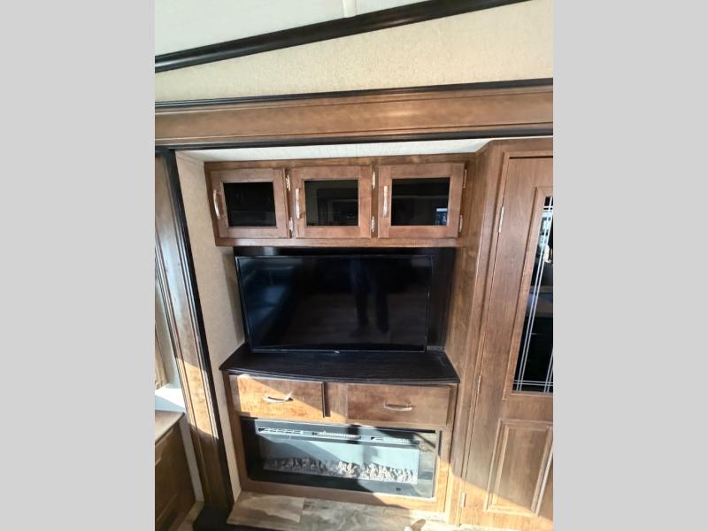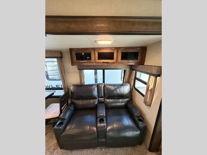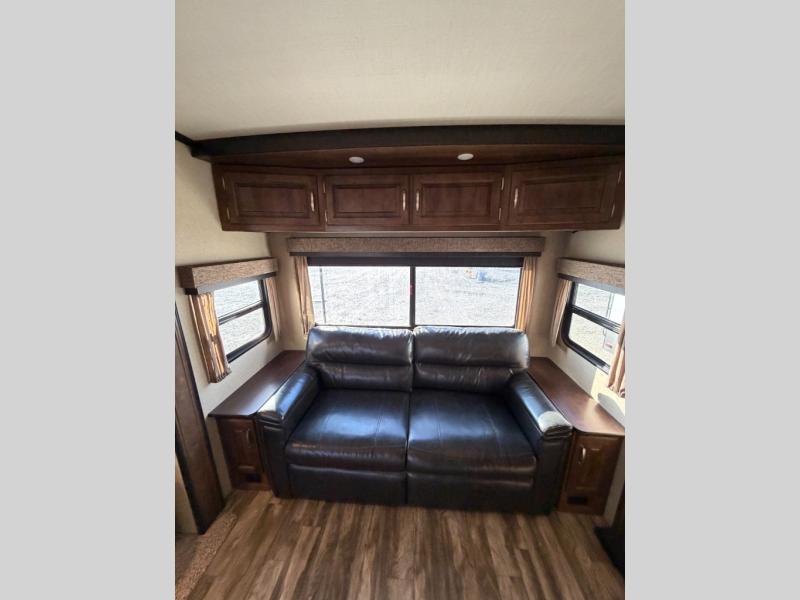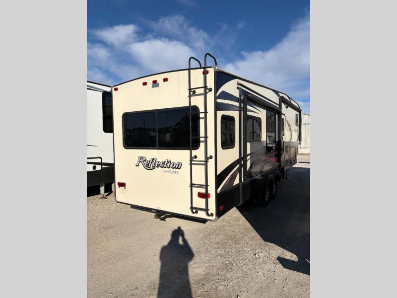 Envision this Reflection 337RLS fifth wheel setup at your favorite RV park for a month. Now picture yourself talking to your friends while relaxing under one of the two awnings while you decide to unload the outdoor gear from the unobstructed pass-through compartment. Your spouse is probably inside cleaning up before lunch time or relaxing on the theater seating. The gourmet kitchen allows you to make just about any meal you desire, and the full bathroom is a "must have". You will find plenty of seating for everyone to watch the 40" TV, and the tri-fold sofa bed allows you to invite overnight guests when you like. Take a look today!