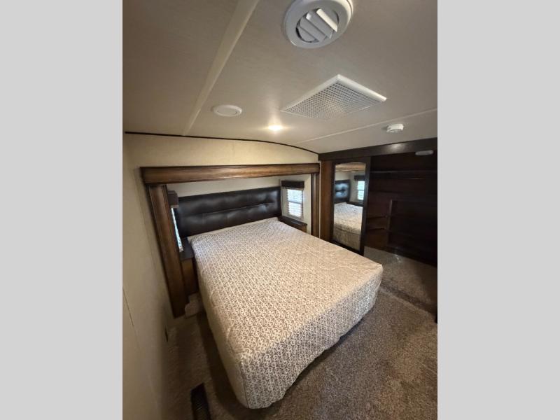 Each Reflection by Grand Design offers luxury along with providing easy towing with the aerodynamic front cap including Max Turn Radius to your favorite destinations. The Universal All-In-One docking station, LP Quick Connect, and One-Touch electric awning with LED lighting makes setting up and packing up easy for those weekenders or full-timers that like to move around. Inside, you will find the bedroom is complete with a pillowtop queen mattress, a king size wardrobe, oversized underbed storage, and much more! The Arctic 4-Seasons Protection package allows you to camp anywhere and anytime of the year. Come choose your favorite model today!