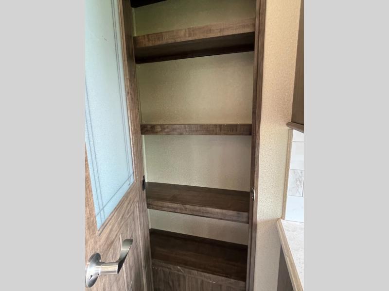 If you are on the search for a livable fifth wheel for those month long trips this Solitude might be the one! Just imagine cooking on a professional grade stainless steel cooktop and inside a built-in oven or convection microwave. The cook can prepare the meals on the kitchen island, and store leftovers in the stainless steel 18 cu. ft. four door refrigerator. When you and your spouse aren't outside, the big screen LED TV in the living area can keep you entertained while staying warm by the fireplace. There is plenty of storage throughout including for your shoes, dry goods, linens, and your wardrobe. You might even like to choose a few options such as adding a washer and dryer, a dishwasher, a king size bed, or even a pull-out kitchen outside. Come see how this Solitude will make life comfortable for years to come!