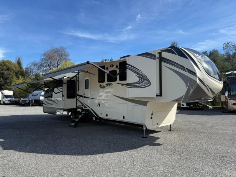 With each Solitude fifth wheel by Grand Design you will receive refined residential finishes, and affordable luxury for your extended stays or weekend get-a-ways. From the solid foundation on an exclusive superchassis and maximum insulation to the taller ceilings, taller and deeper cabinets, the power reclining theatre seating with removable swivel tables including a heat and massage function to the pet dish drawer, the Stealth AC system, and the Weather-Tek package allowing you to travel any season, you will enjoy everything about your Solitude. It's time to redefine luxury living where ever you decide to land.
