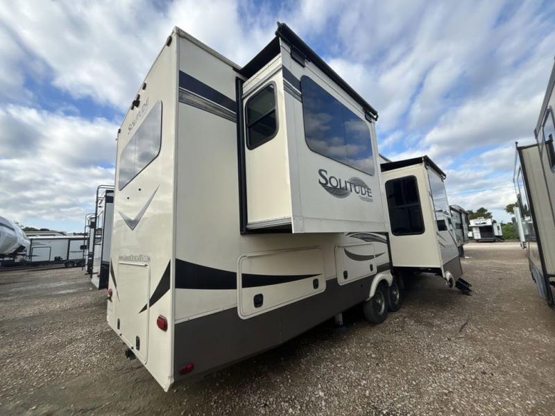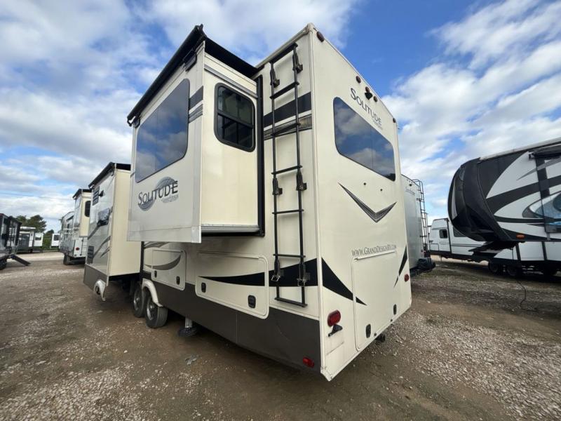 With each Solitude fifth wheel by Grand Design you will receive refined residential finishes, and affordable luxury for your extended stays or weekend get-a-ways. From the solid foundation on an exclusive superchassis and maximum insulation to the taller ceilings, taller and deeper cabinets, the power reclining theatre seating with removable swivel tables including a heat and massage function to the pet dish drawer, the Stealth AC system, and the Weather-Tek package allowing you to travel any season, you will enjoy everything about your Solitude. It's time to redefine luxury living where ever you decide to land.