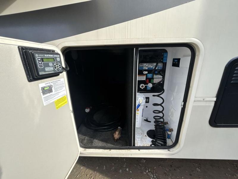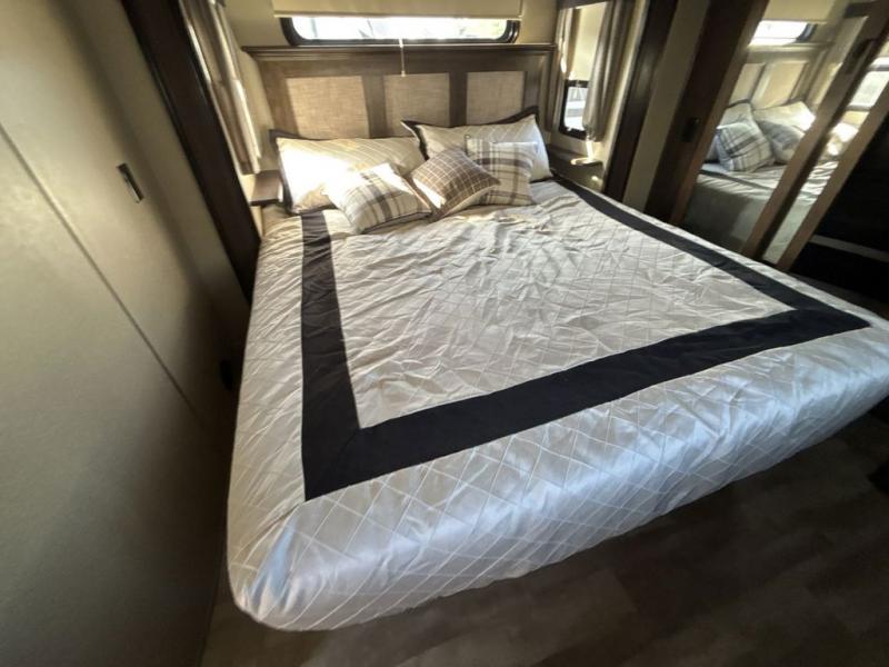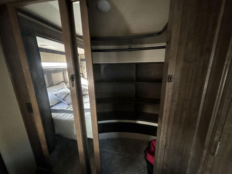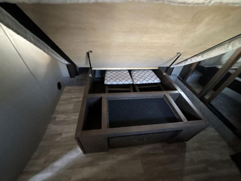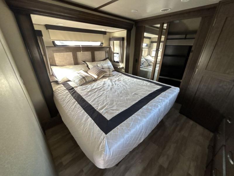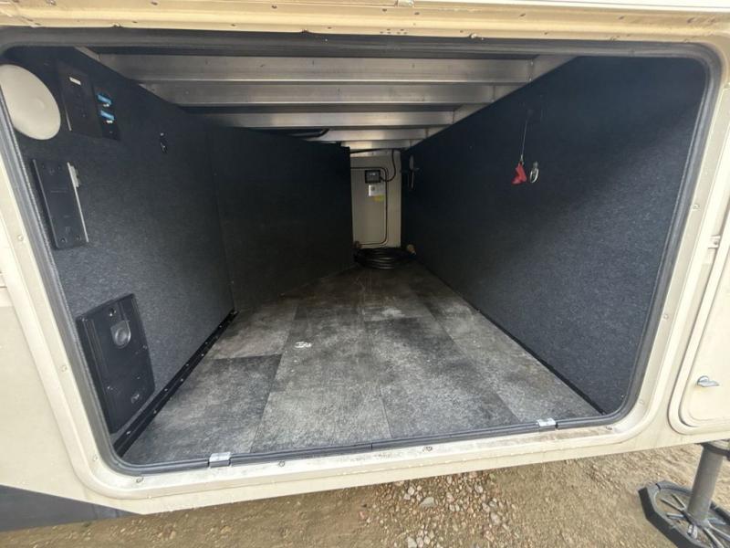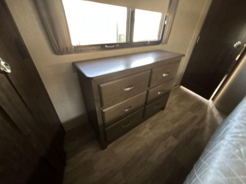 Imagine traveling with comforts of home including plenty of interior floor space to move around, extra sleeping space for the kids or grandkids, and plenty of storage for everything you might need for an extended stay. The unique exterior rear storage includes a sliding tray allowing easy access to the gear in the back. Inside, the front master bedroom will not disappoint with a pullout ottoman, flip-top dresser, and a TV to mention a few features. The chef will surely love making meals with the professional grade stainless steel cooktop, and the buffet adds additional counter space to serve food and/or place your keys and things on. You will find many more features to love, and options to choose from.