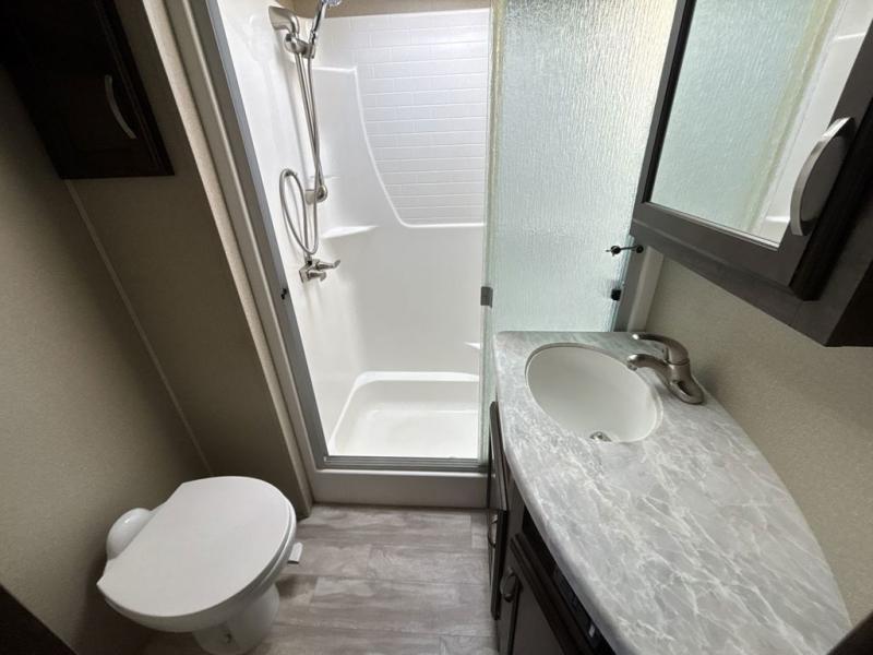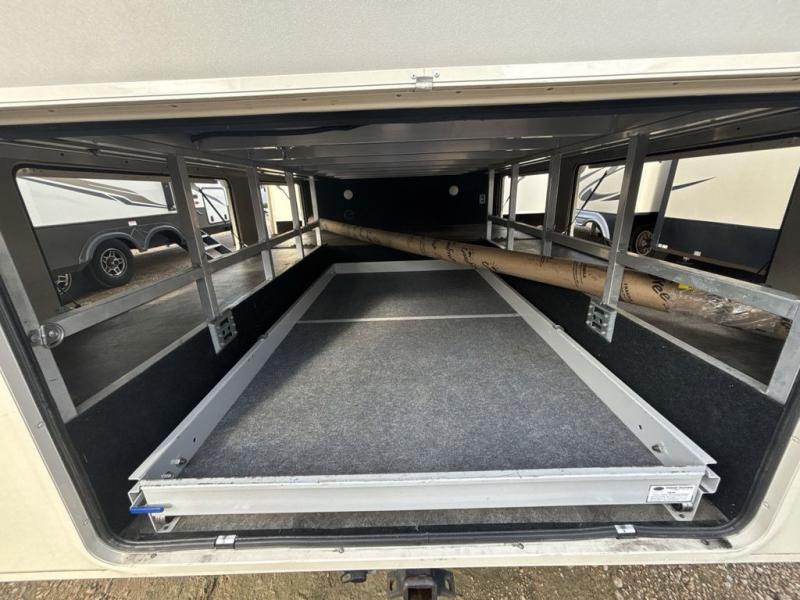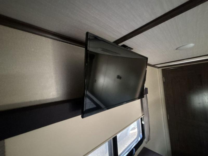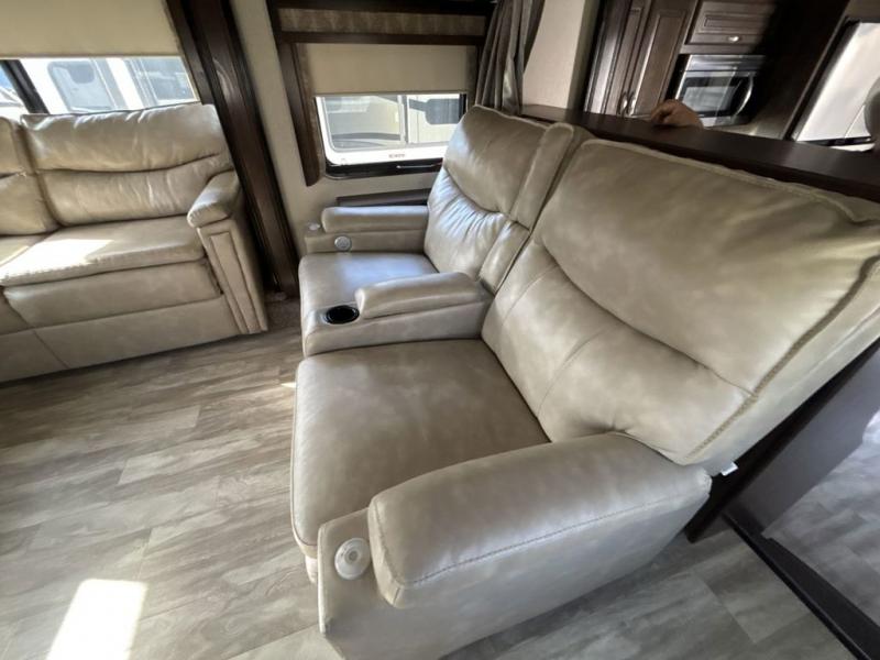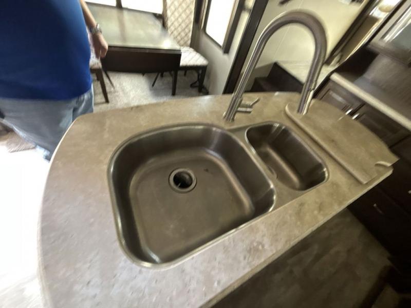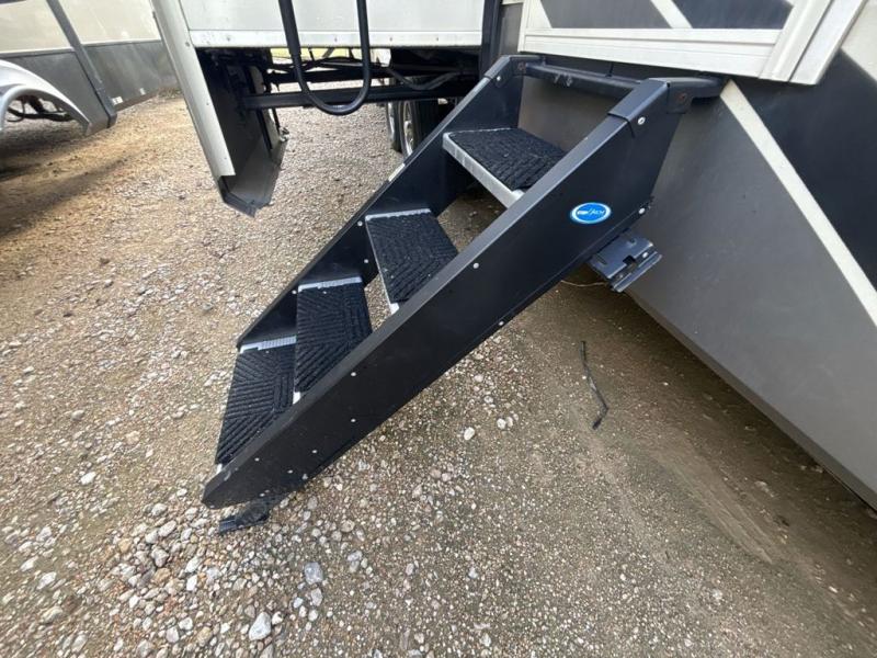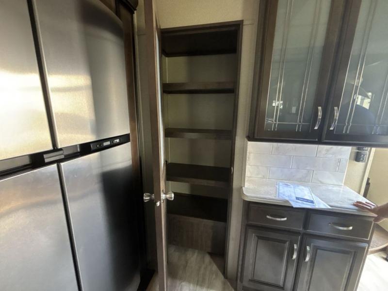 Imagine traveling with comforts of home including plenty of interior floor space to move around, extra sleeping space for the kids or grandkids, and plenty of storage for everything you might need for an extended stay. The unique exterior rear storage includes a sliding tray allowing easy access to the gear in the back. Inside, the front master bedroom will not disappoint with a pullout ottoman, flip-top dresser, and a TV to mention a few features. The chef will surely love making meals with the professional grade stainless steel cooktop, and the buffet adds additional counter space to serve food and/or place your keys and things on. You will find many more features to love, and options to choose from.