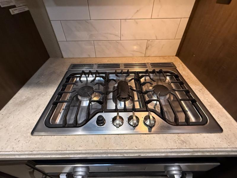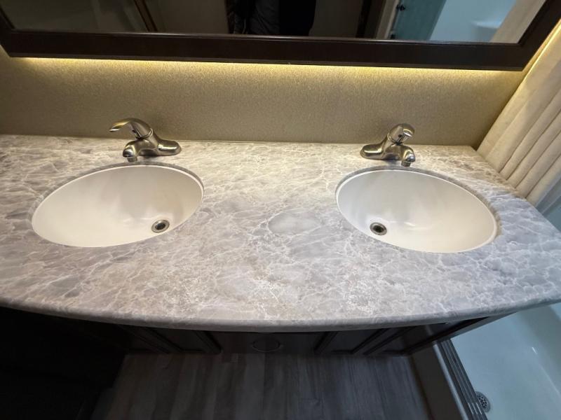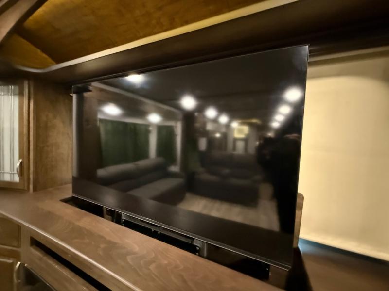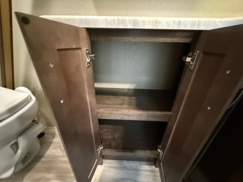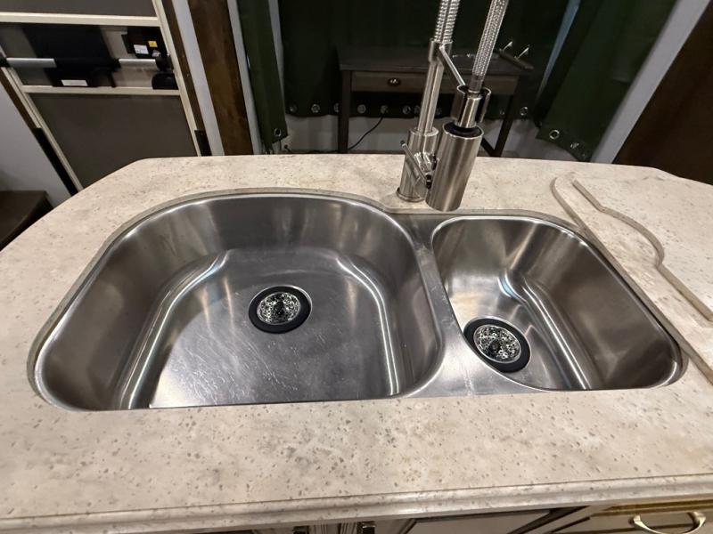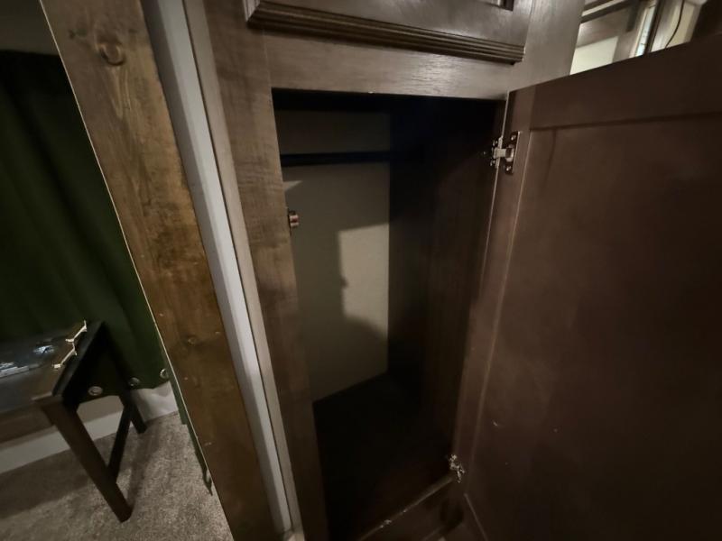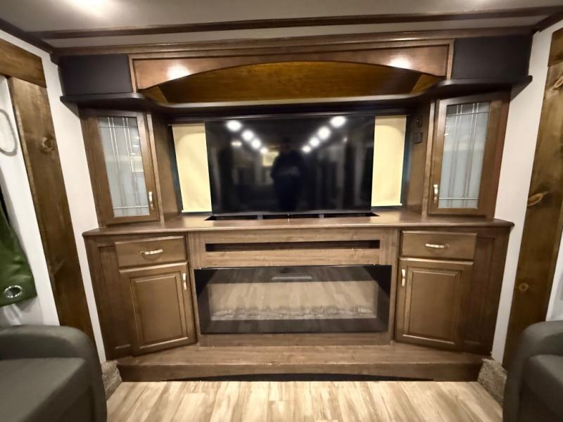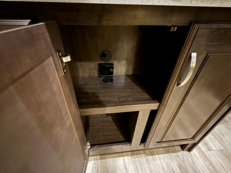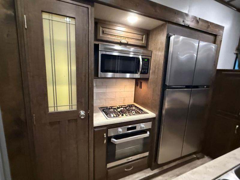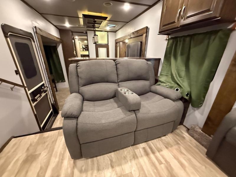 If you have been wanting to make the move to full-time RVing, imagine enough walking around space with five slide outs, extra sleeping accommodations for the grandkids in the front separate living area, and plenty of storage for all your things. You will find a dream kitchen for the cook in the family, plus the free standing dinette offers a cozy place to eat meals. The walk-through bedroom features two space savings sliding doors, and the rear master bathroom offers dual sinks, one for you and one for your spouse. You might even decide to add a few options such as a washer and dryer and/or a king size bed. Outside, there is a pass-through compartment, and rear storage with a sliding tray making getting to your gear easy. Take a look, you will be happy you did!