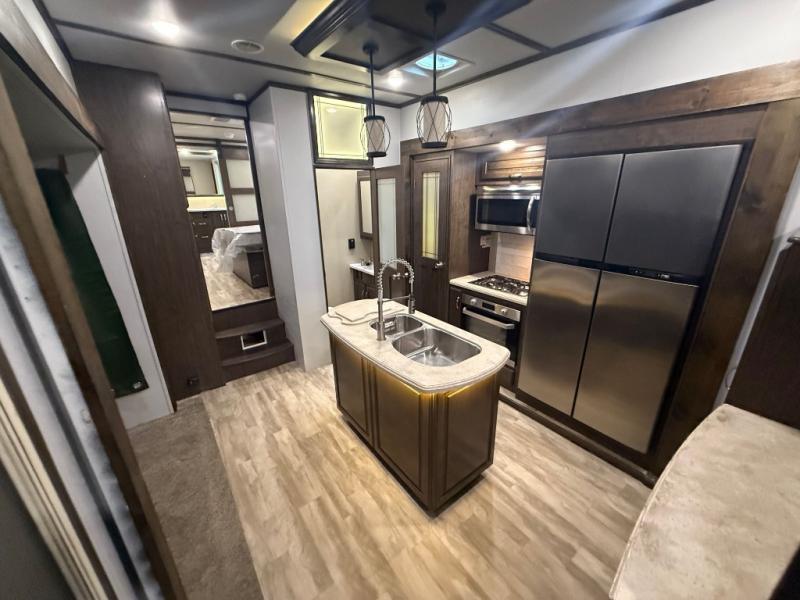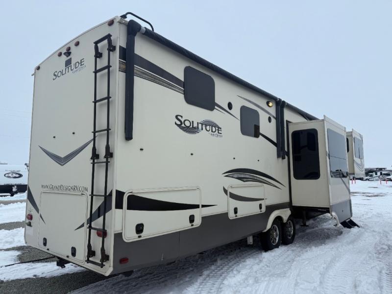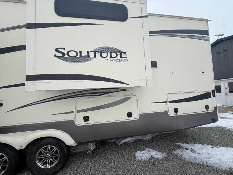 With each Solitude fifth wheel by Grand Design you will receive refined residential finishes, and affordable luxury for your extended stays or weekend get-a-ways. From the solid foundation on an exclusive superchassis and maximum insulation to the taller ceilings, taller and deeper cabinets, the power reclining theatre seating with removable swivel tables including a heat and massage function to the pet dish drawer, the Stealth AC system, and the Weather-Tek package allowing you to travel any season, you will enjoy everything about your Solitude. It's time to redefine luxury living where ever you decide to land.